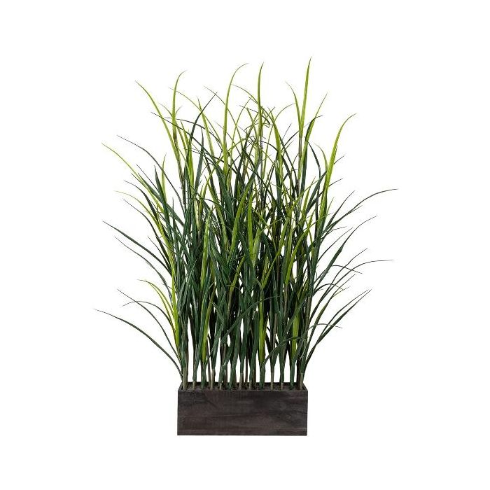 Herbe artificielle - Séparation de pièce en panicum ULINKA dans un bac en bois, vert, 70x50x90cm