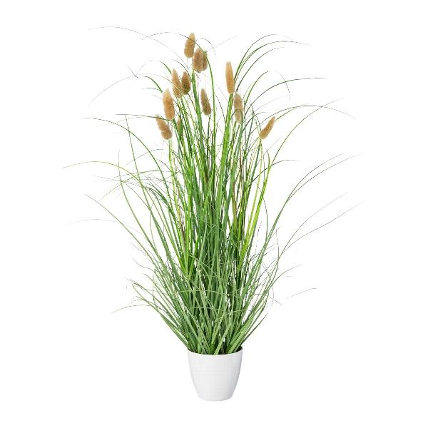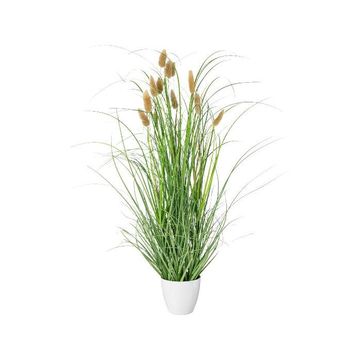 Herbe décorative Lagurus ovatus BIRVO dans un cache-pot en mélamine, panicules, beige, 60cm