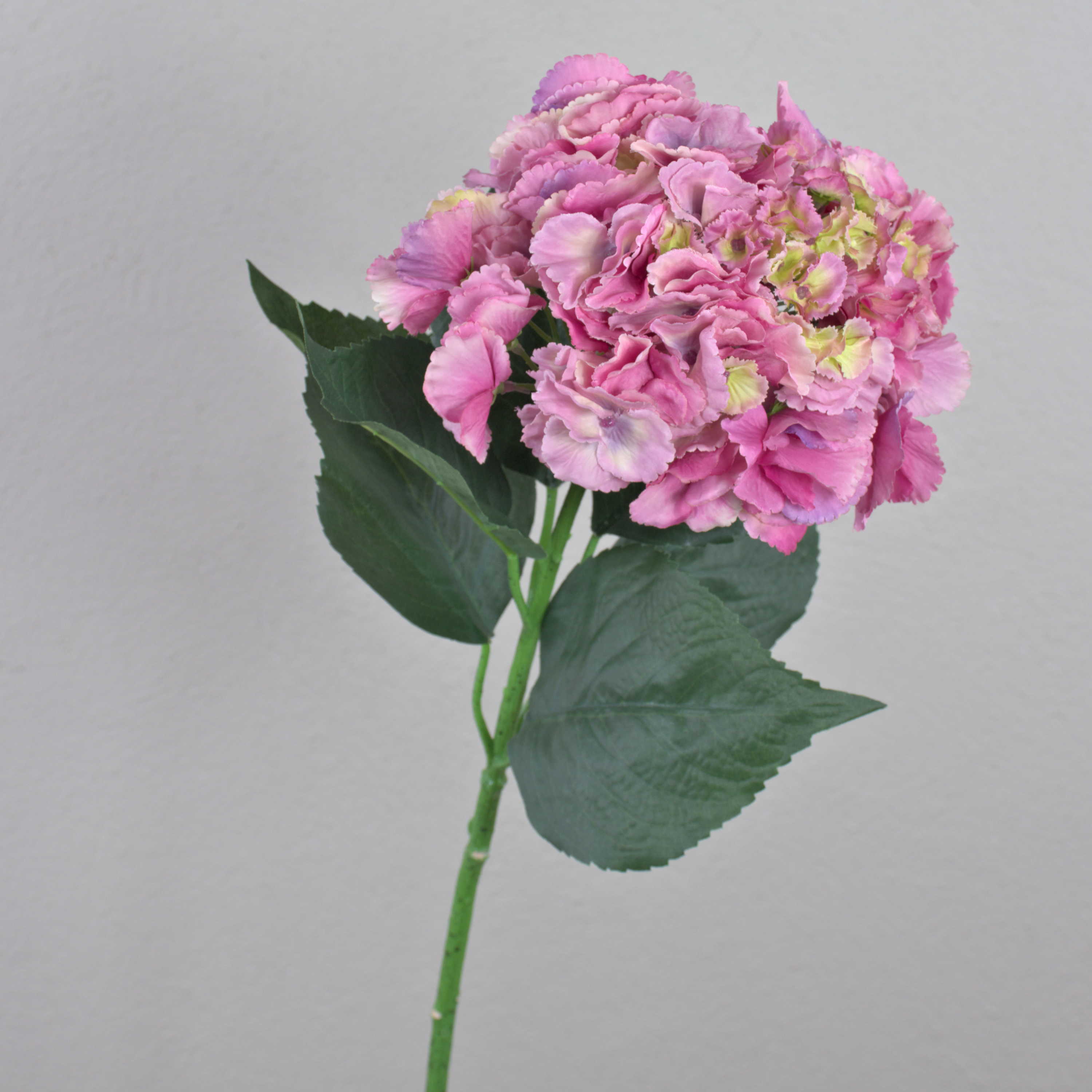 Hortensia en soie couleur mauve qui peut être utilisé aussi bien individuellement que dans une composition florale.