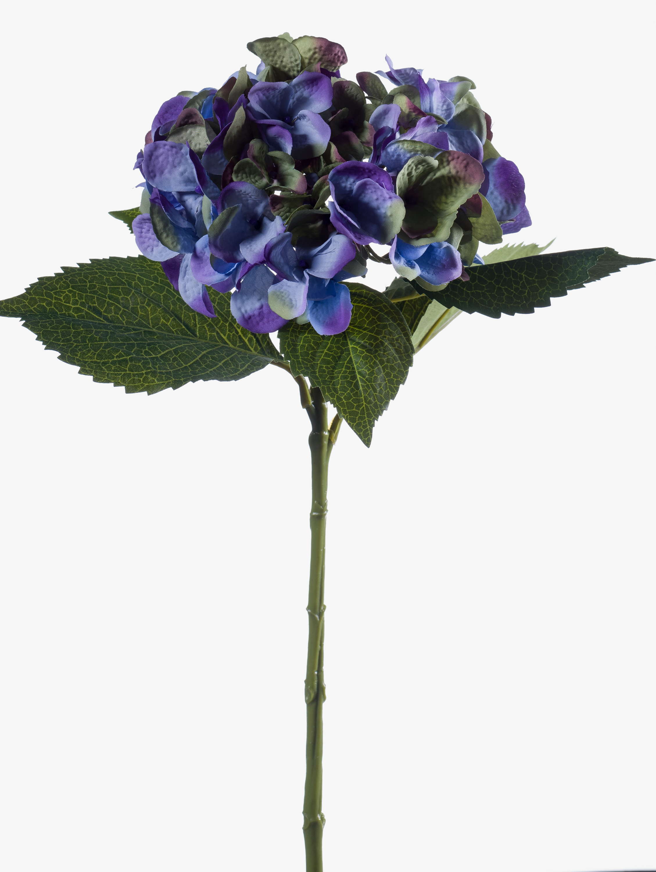 Fleur d’hortensia artificielle de la nouvelle collection 2014 mesurant au total environ 50 cm de long. Cette jolie fleur bleue sera idéale pour un bouquet ou une composition florale.