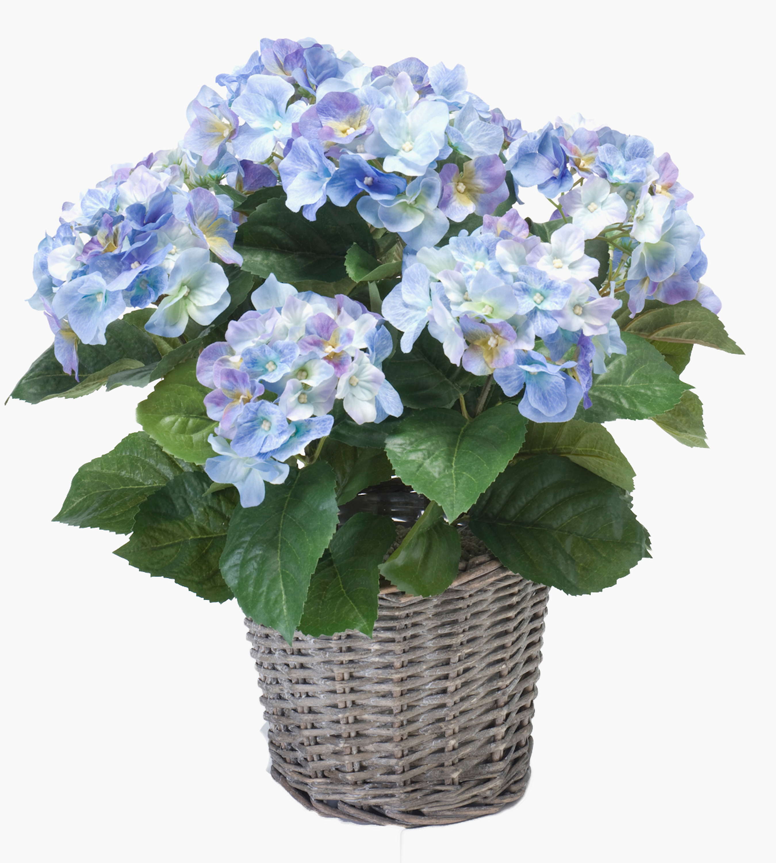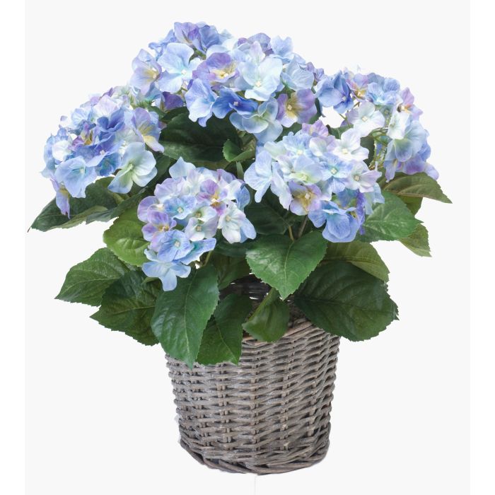 Hortensia artificiel JONE en corbeille tressée, bleu, 45cm