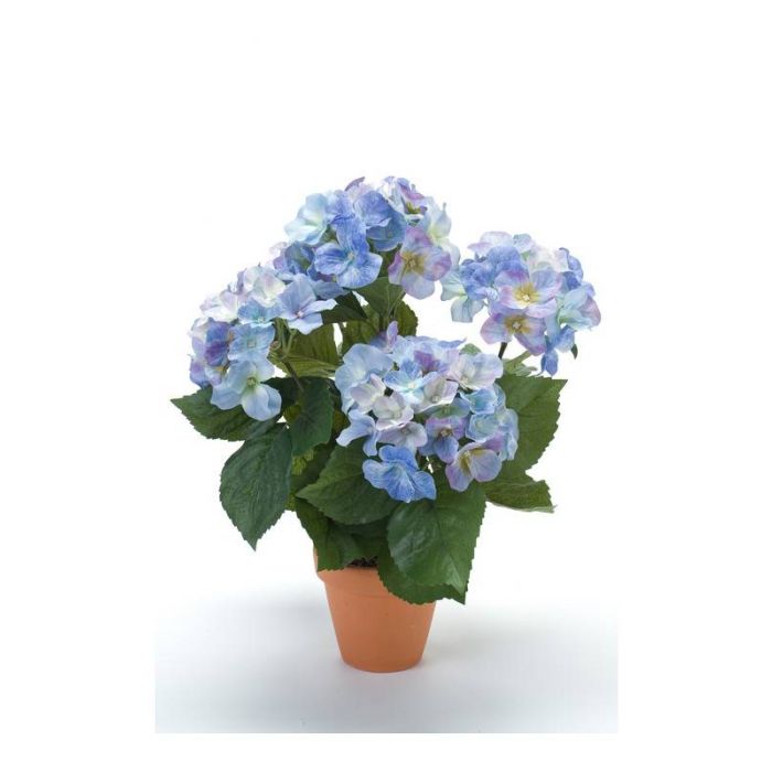 Hortensia artificiel JONE en pot en argile, bleu, 40cm