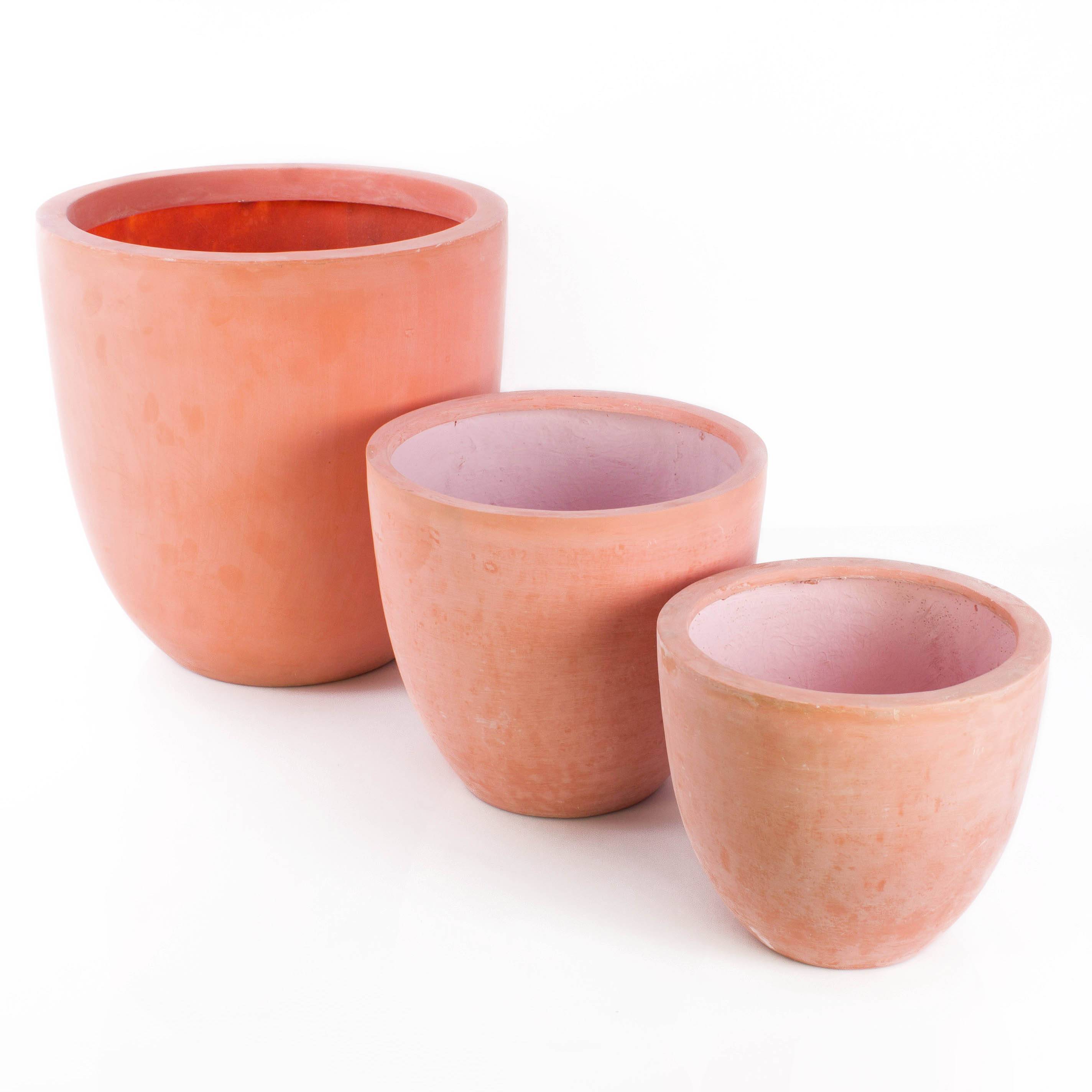 - Pot de forme ronde de couleur terre cuite