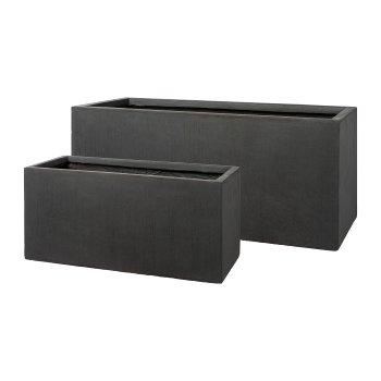 Jardinière rectangulaire KIRIMA, 2 pièces, fibre de verre, anthracite, 60x28x28cm, 80x35x35cm