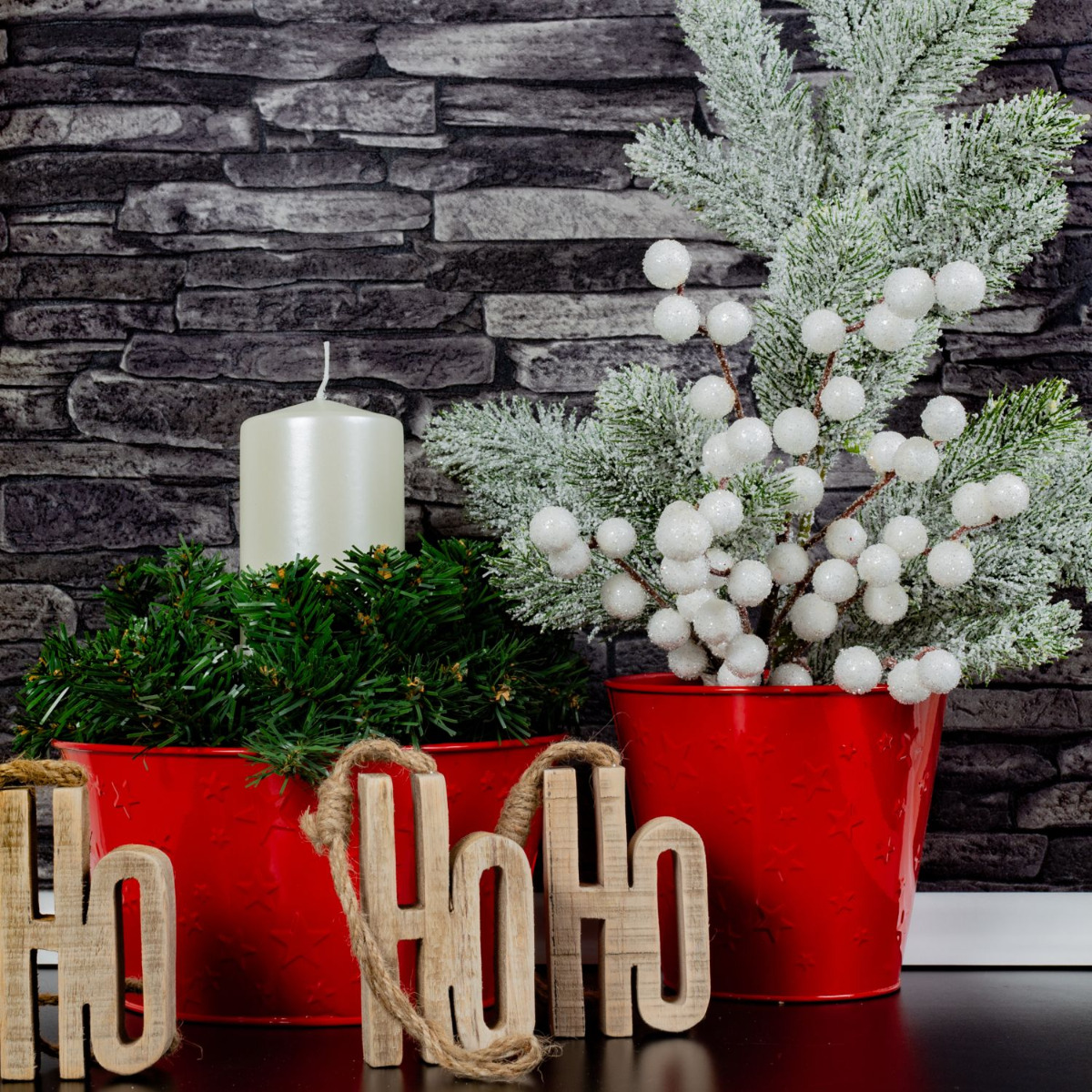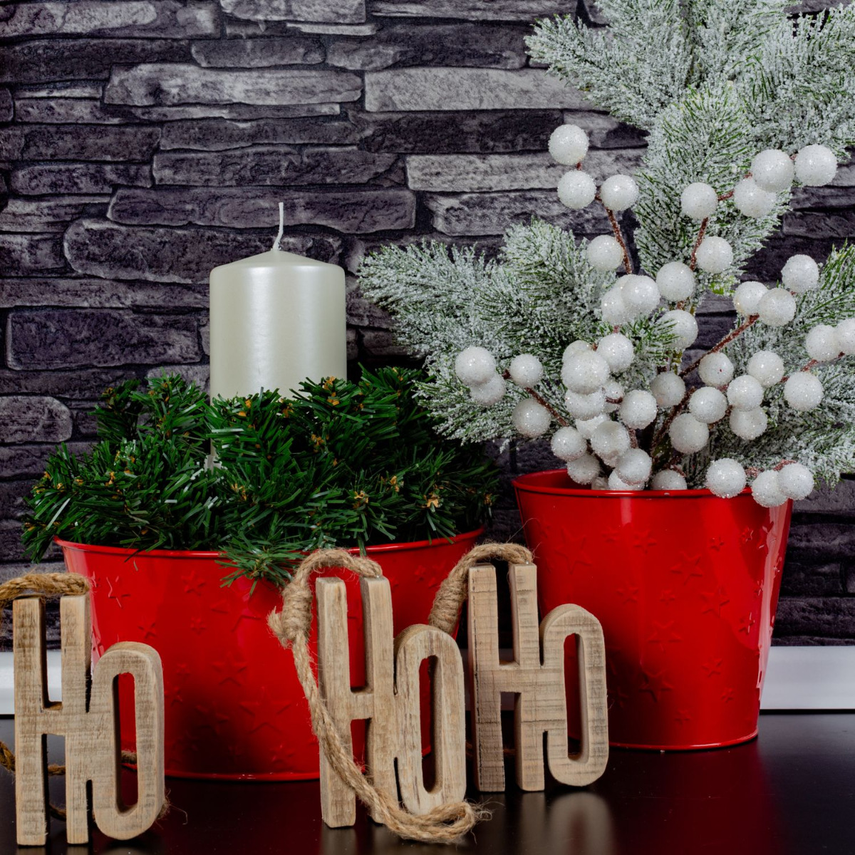 Un Noël brillant ! La coupe rouge et le vase en céramique rouge s'intègrent parfaitement dans la période de Noël. Placez la couronne sur la coupe , ajustez-la légèrement, placez le bougeoir avec la bougie au centre, et voilà, une partie de votre décoration est déjà terminée. Vous pouvez remplir le vase avec les granulés de votre choix, qui maintiendront en place l'ail ornemental et la branche de sapin. Vous pouvez bien sûr ajouter des figurines décoratives et des petites boules. Shop the Look !