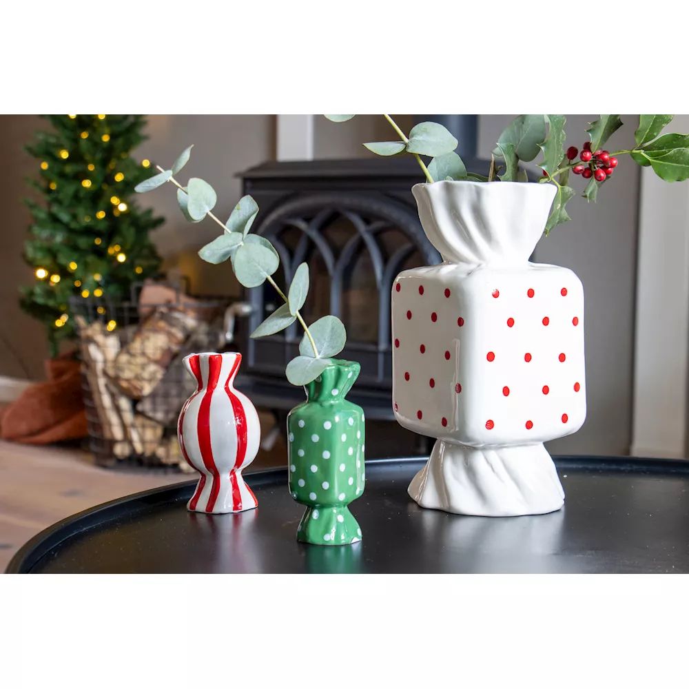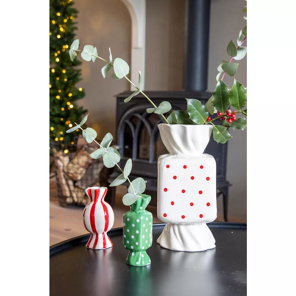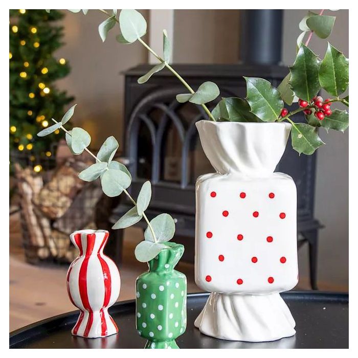 Des touches de couleur pour des moments festifs ! De petits vases en céramique aux couleurs acidulées apportent une touche colorée et rayonnent de légèreté. Agrémentés de manière minimaliste de branches de houx et d'eucalyptus, ils créent de charmants arrangements hivernaux qui répandent la joie. À l'arrière-plan, un sapin de Noël scintille de mille feux et plonge la scène dans une lumière chaude et magique. Une combinaison évocatrice de couleurs, de nature et de magie de Noël, parfaite pour profiter avec style des moments hivernaux. Shop the Look!