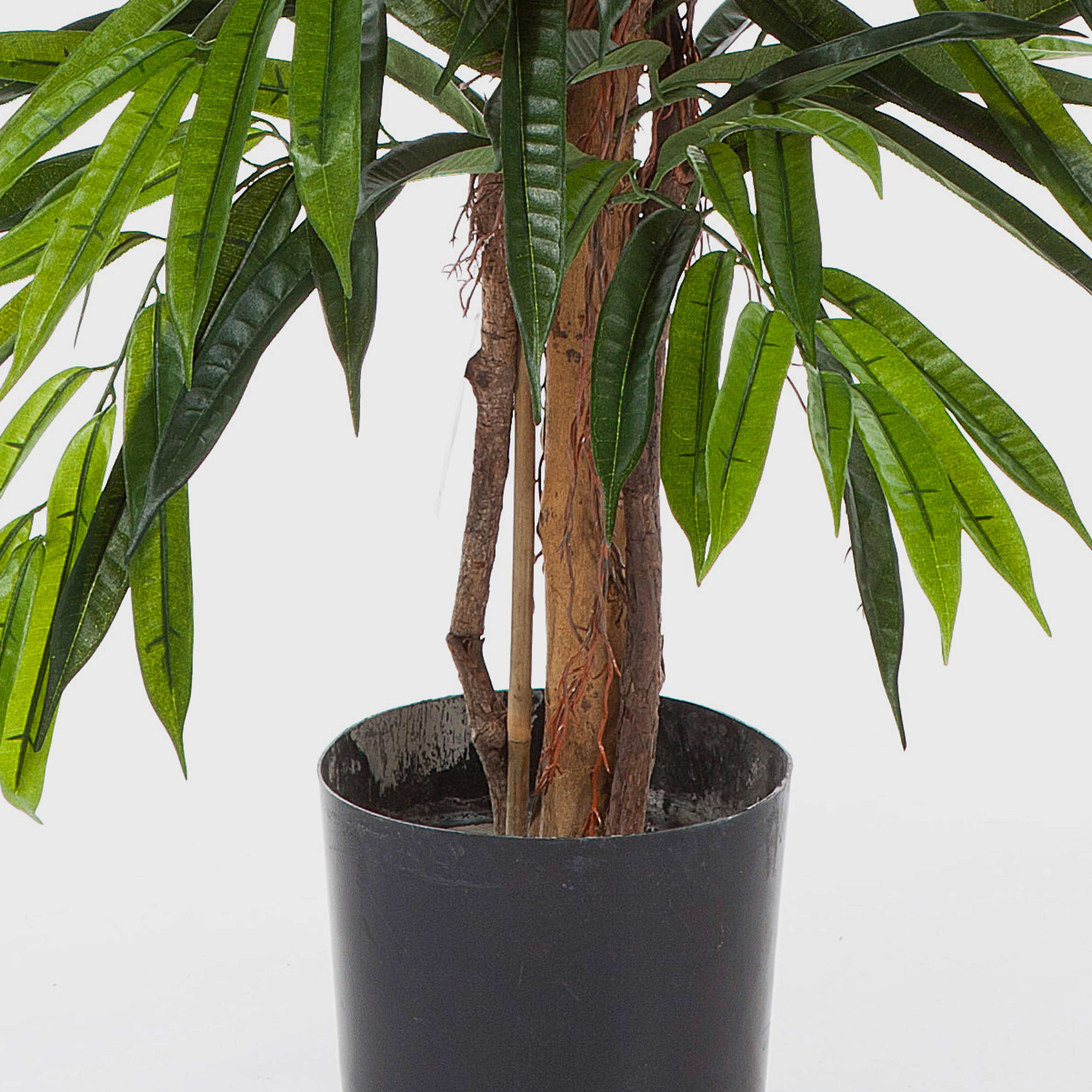 Les feuilles finement veinées aux différentes nuances de vert en combinaison avec le tronc en bois véritable créeront l'aspect naturel de l'arbre artificiel AKUMO. En plus du tronc épais, cet arbre décoratif d'env. 180 cm de haut se caractérise par d'autres troncs plus minces et des racines aériennes fines.