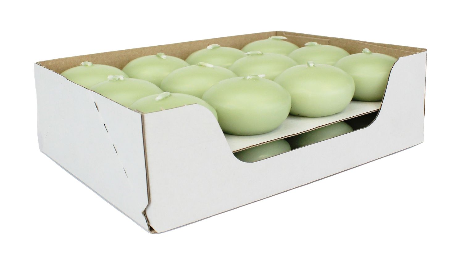 Lot de 24 bougies flottantes ORNELLA, vert pastel, 2,8cm, Ø4,5cm, 4h