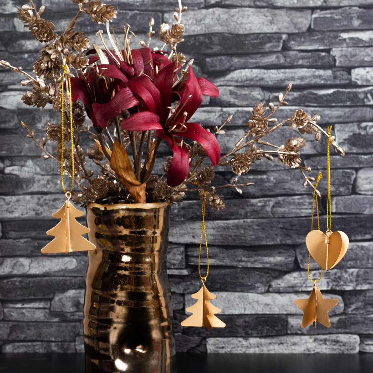 Joyeux Noël ! L'année touche à sa fin, c'est maintenant la saison des amaryllis et des couleurs rouge et or. La branche de pin dorée et l'amaryllis rouge dans le vase brillant attirent tous les regards dans votre intérieur et renforcent l'anticipation des fêtes de Noël. Quelques ornements décoratifs et des bougies blanches complètent à merveille l'ensemble. Shop the Look!