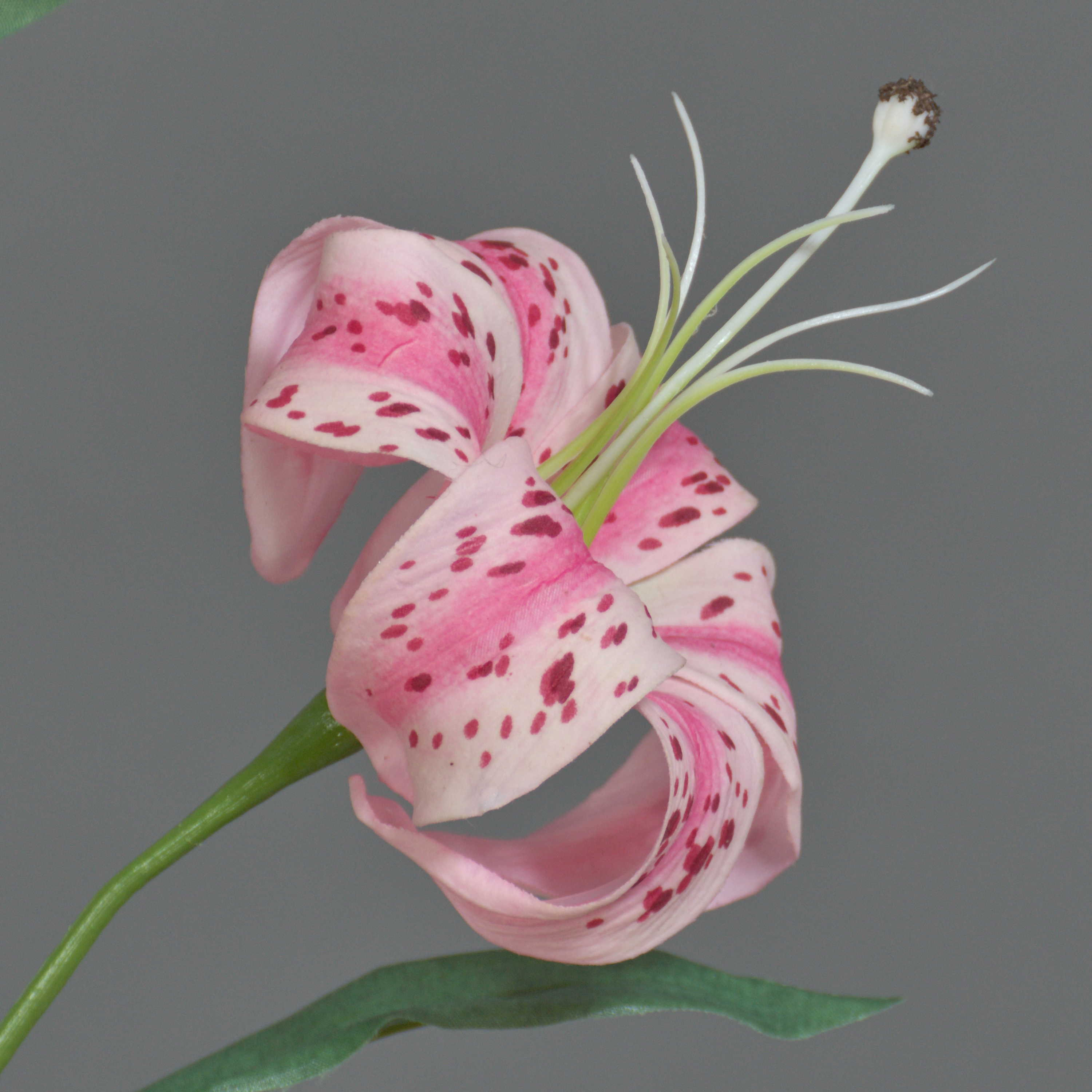 Lys tigré en tissu DANBI avec une longueur totale d'environ 85 cm de couleur rose fuchsia.