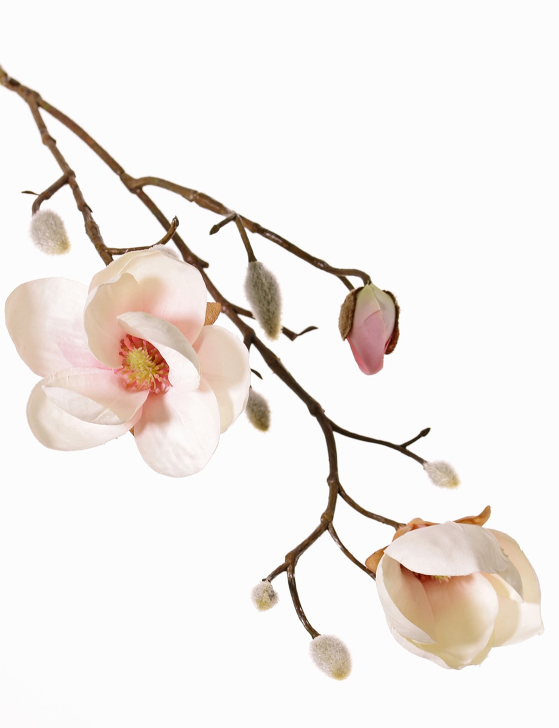 Magnolia en tissu KOSTAS, crème-rose, 55cm, Ø5-8cm