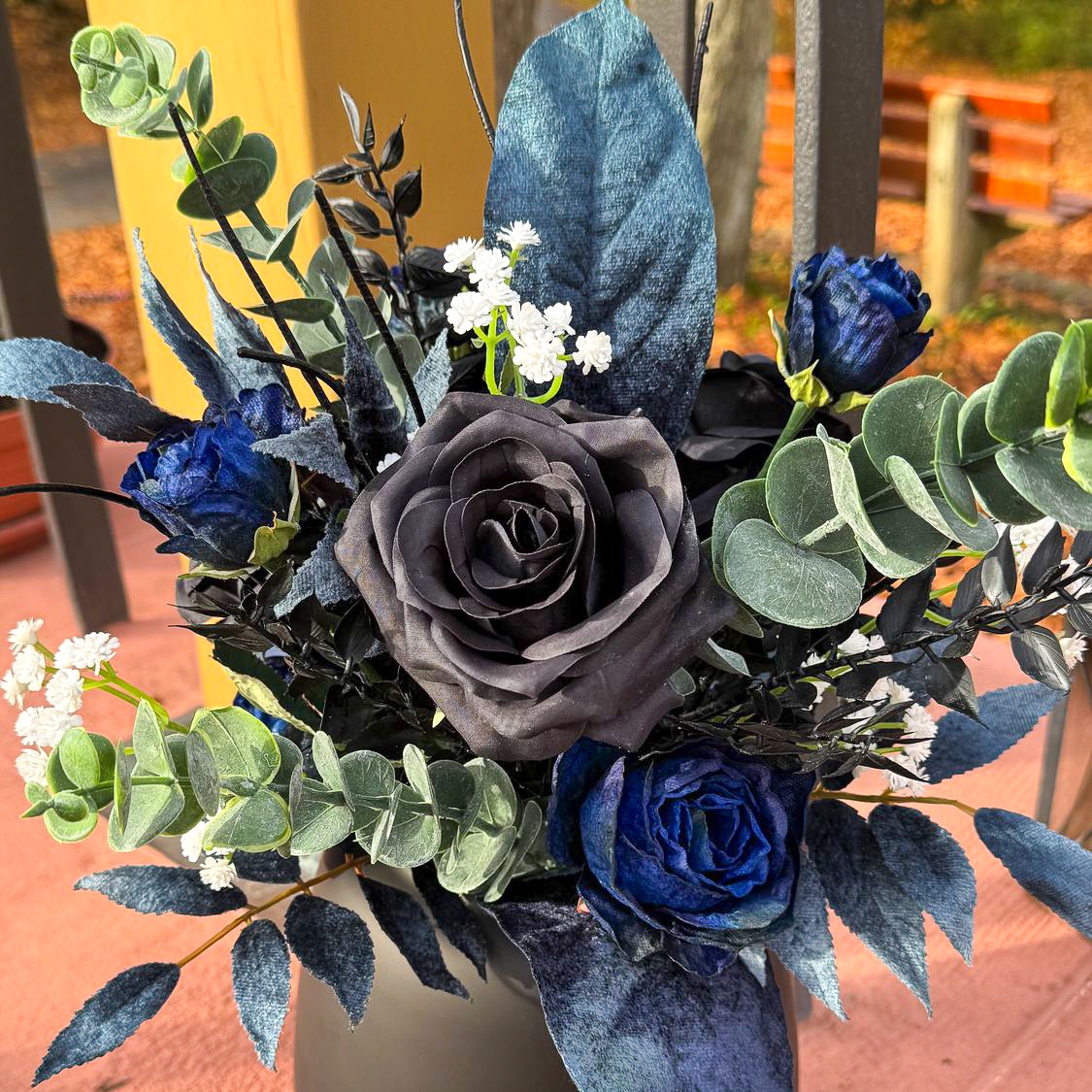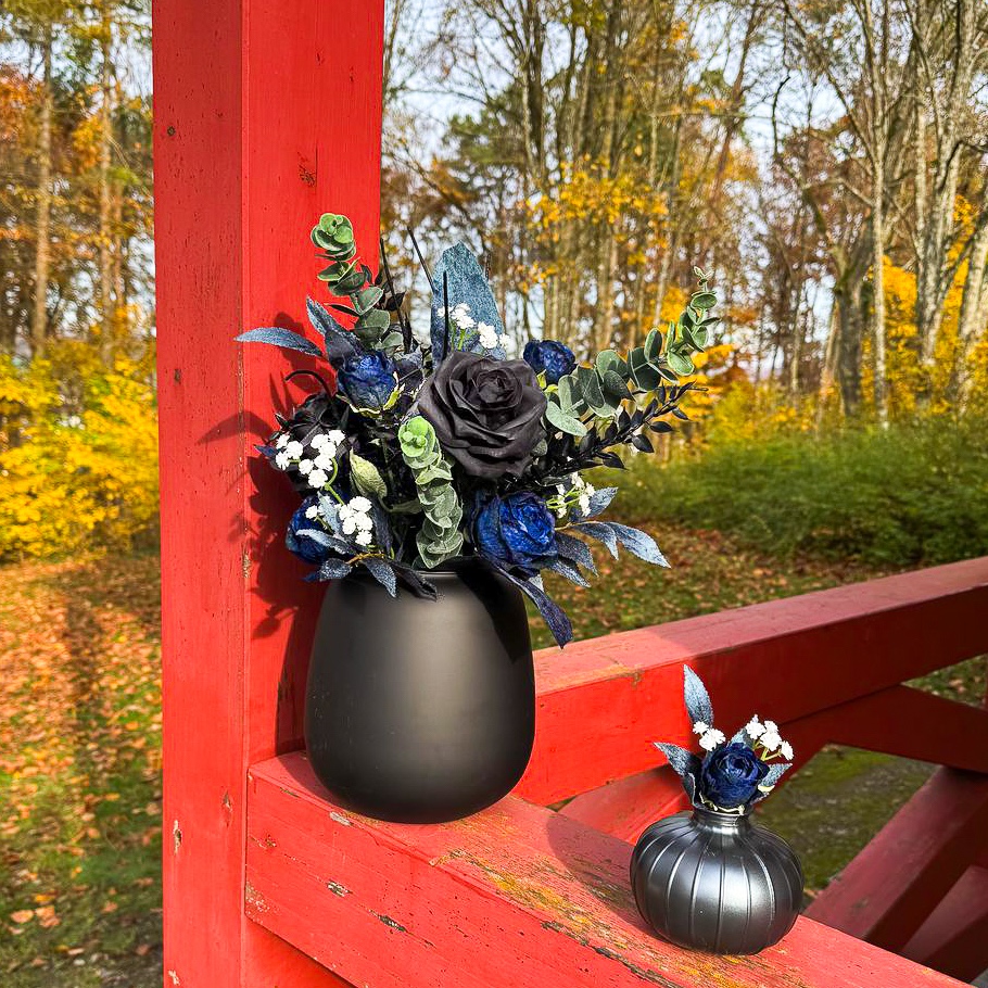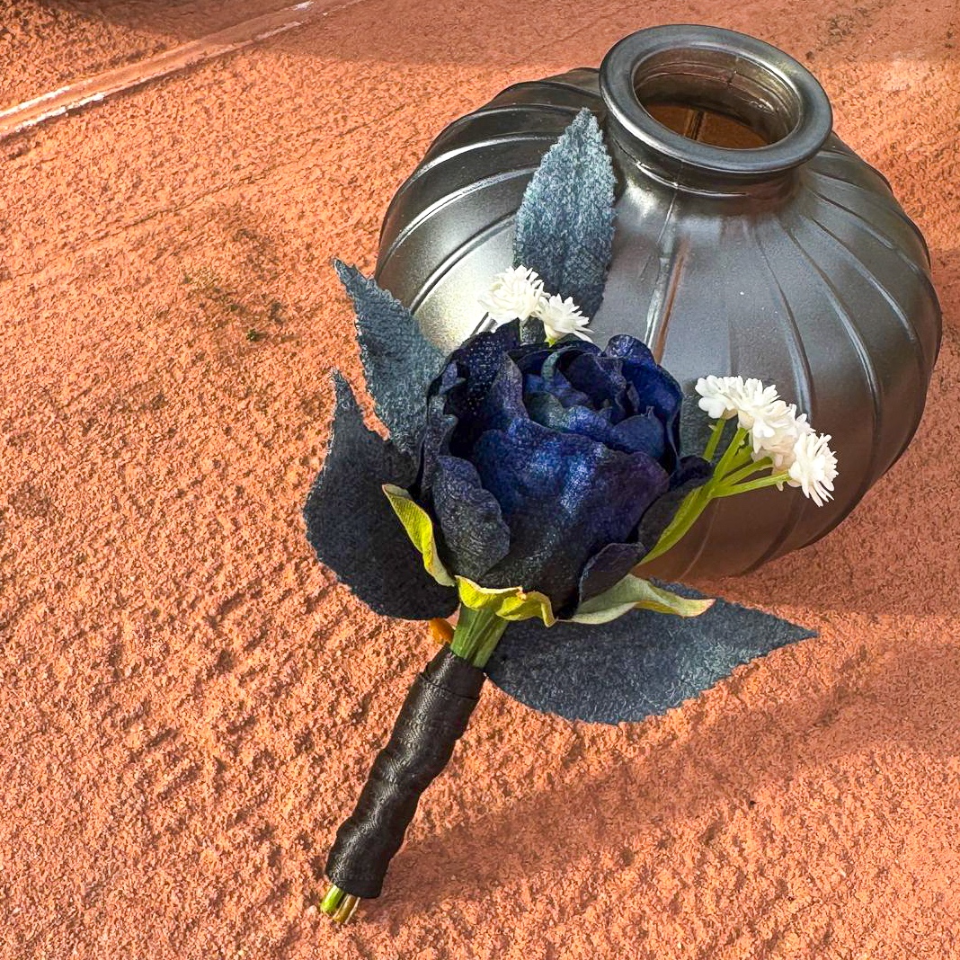 Quand l'art floral rencontre l'élégance intemporelle ! Nous avons eu le privilège de créer l'ensemble des compositions florales pour un mariage de rêve dans le sud de la France, sur une presqu'île idyllique. La cérémonie s'est déroulée à la mi-novembre, une période où l'élégance et la profondeur des couleurs sont particulièrement mises en valeur. La cliente souhaitait un concept moderne et raffiné dans les tons noir et bleu foncé, rehaussé de fines touches de blanc pour un mariage classique. Tous les éléments bleu foncé ont été dotés d'une surface veloutée qui dégage une impression de noblesse et de chaleur, particulièrement appréciable pendant la saison froide. Le bouquet de la mariée et la boutonnière assortie pour le marié constituent le cœur de l'ensemble du concept floral, harmonieusement coordonnés et déterminants pour le style de tous les autres arrangements. Vous souhaitez également célébrer votre mariage avec des fleurs artificielles ? Shop the Look !