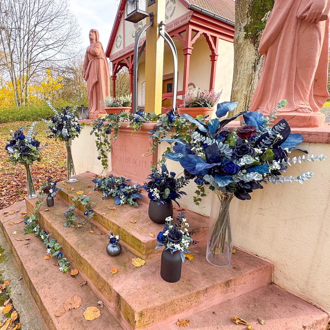Quand l'art floral rencontre l'élégance intemporelle ! Nous avons eu le privilège de créer l'ensemble des compositions florales pour un mariage de rêve dans le sud de la France, sur une presqu'île idyllique. La cérémonie s'est déroulée à la mi-novembre, une période où l'élégance et la profondeur des couleurs sont particulièrement mises en valeur. La cliente souhaitait un concept moderne et raffiné dans des tons noir et bleu foncé, rehaussé de subtiles touches de blanc pour un mariage classique. Tous les éléments bleu foncé ont été dotés d'une surface veloutée qui dégage une impression de noblesse et de chaleur, particulièrement appréciable pendant la saison froide. Vous souhaitez vous aussi célébrer votre mariage avec des fleurs artificielles ? Shop the Look !