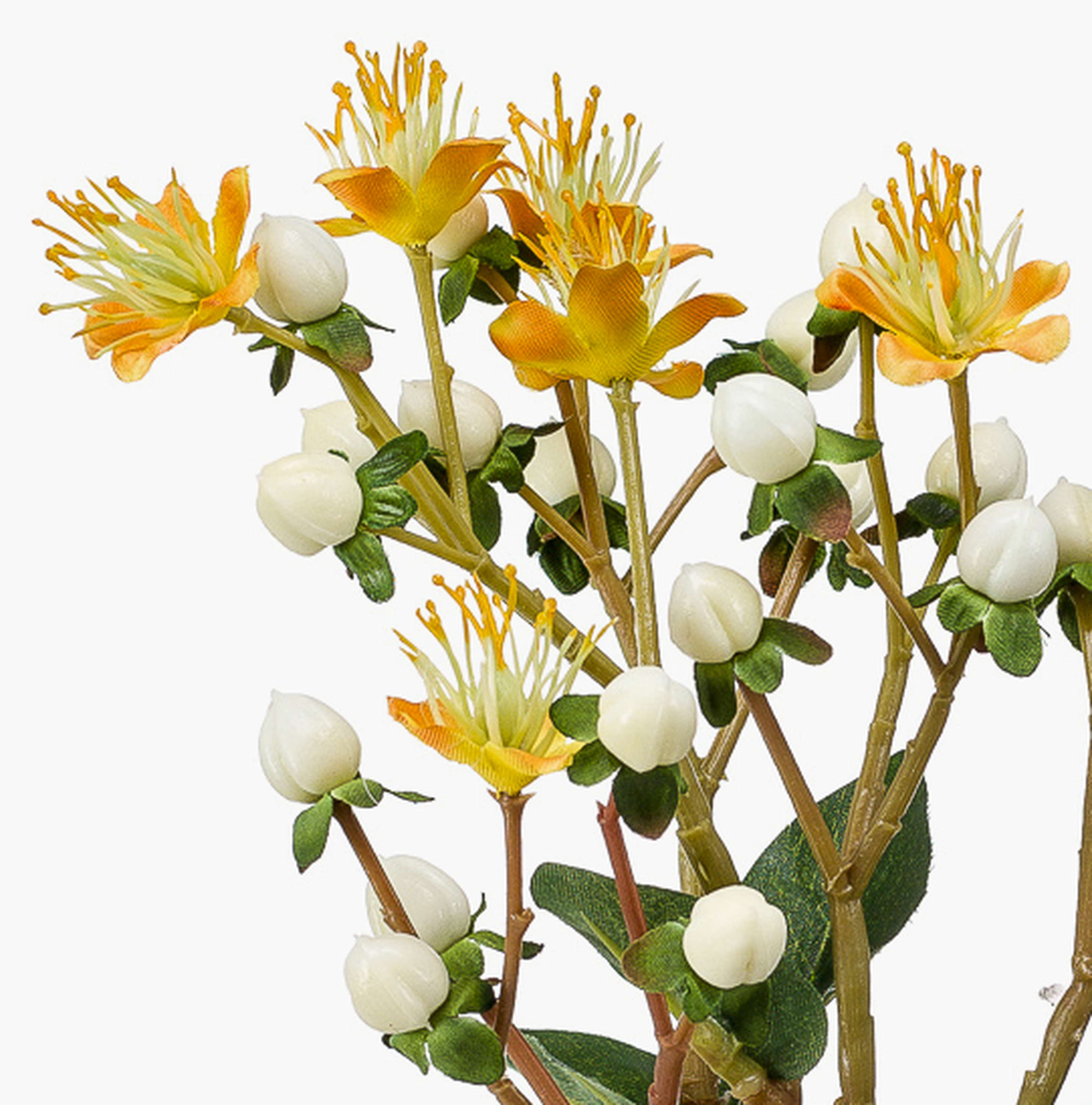 Millepertuis décoratif CANNO avec fleurs, fruits, jaune-blanc, 65cm