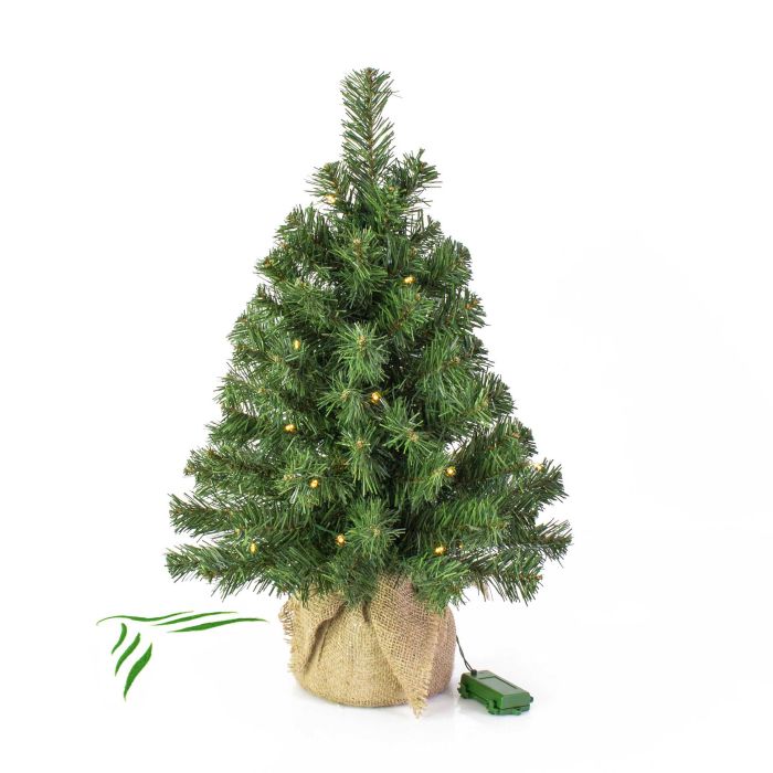 Mini sapin artificiel VARSOVIE, sac de jute, LEDs, 60cm, Ø40cm