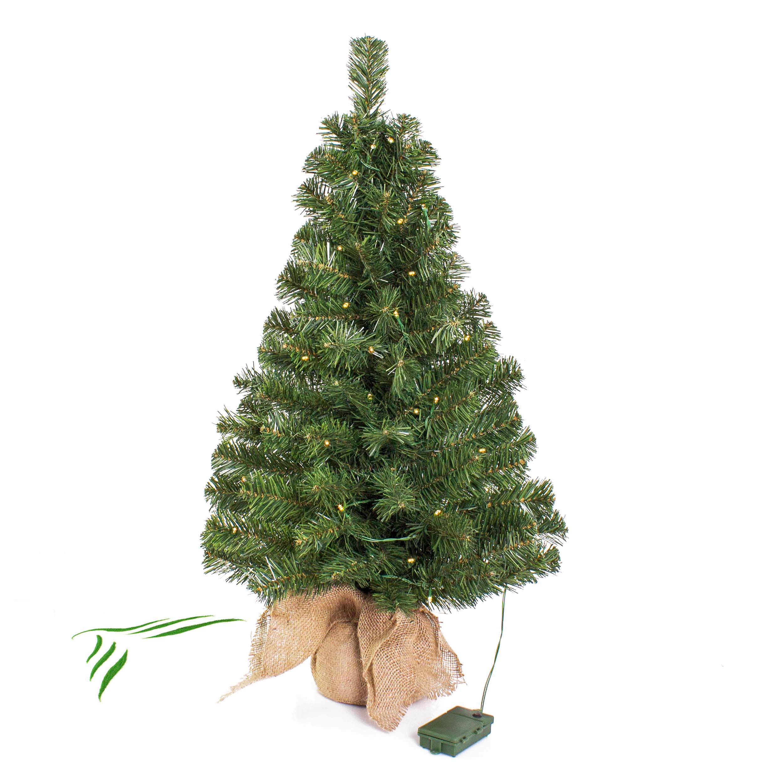 Mini sapin artificiel VARSOVIE, sac de jute, LEDs, 90cm, Ø50cm