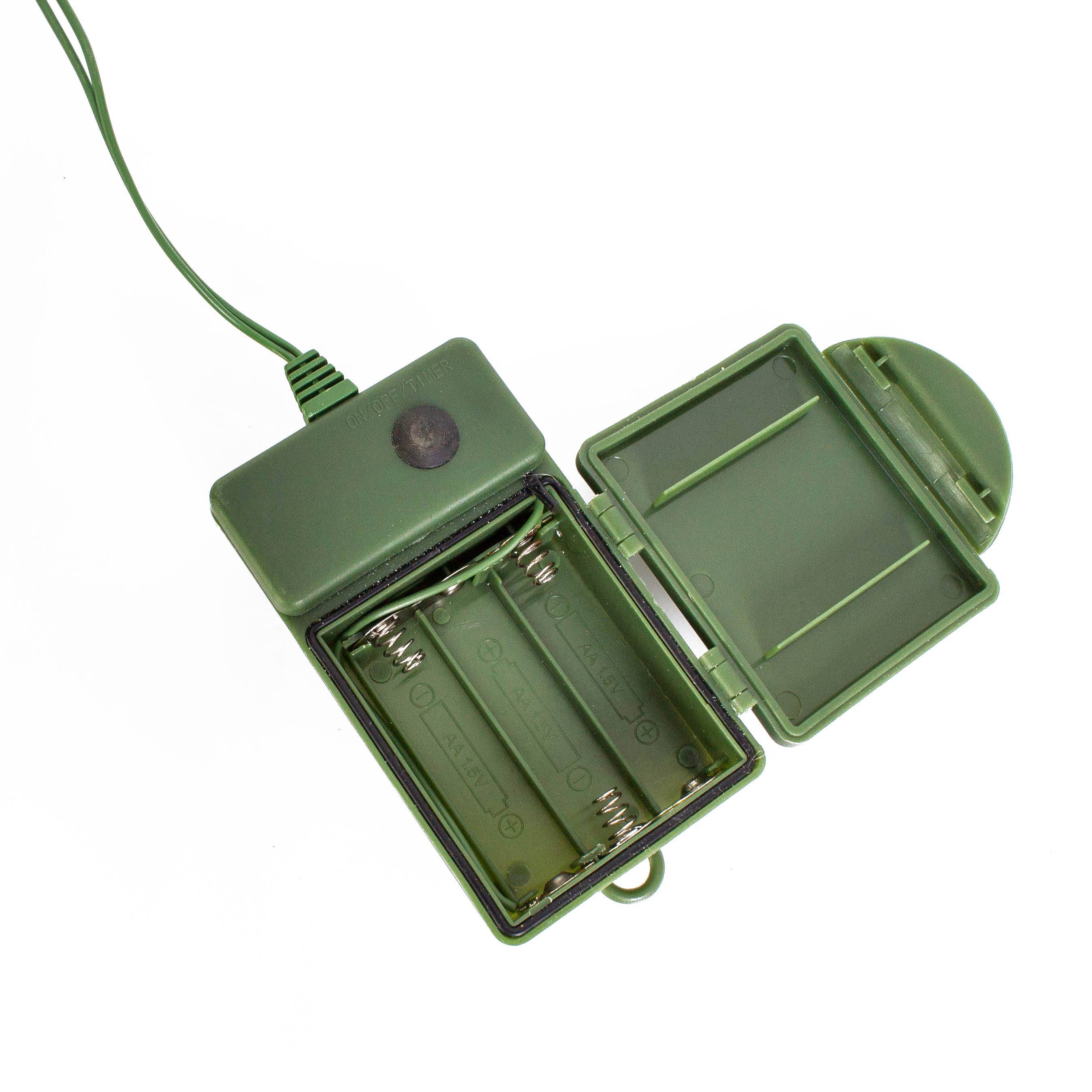 - Sapin livré avec une guirlande lumineuse (25 diodes LED, ampoules de rechange), fonctionne avec des piles LR6-AA, 5 modes d’éclairage