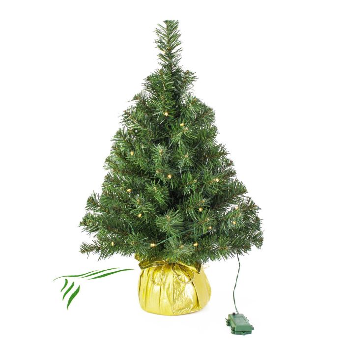 Mini sapin artificiel VARSOVIE, sac doré, LEDs, 60cm, Ø40cm
