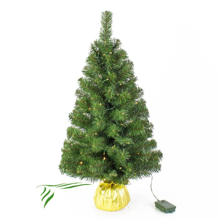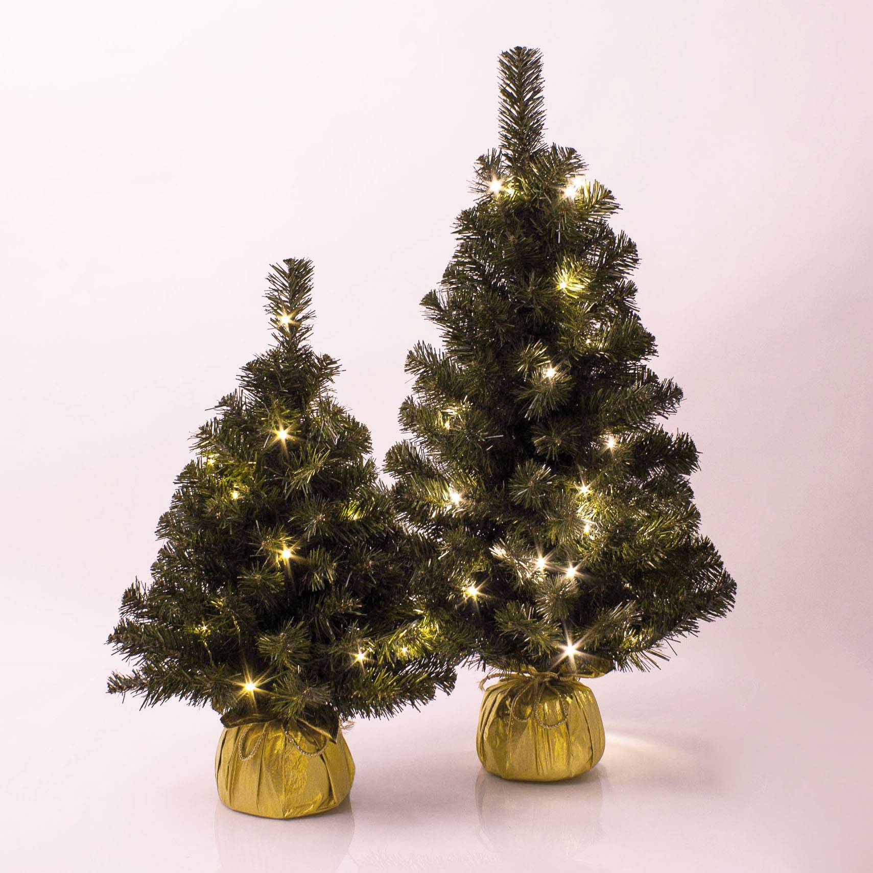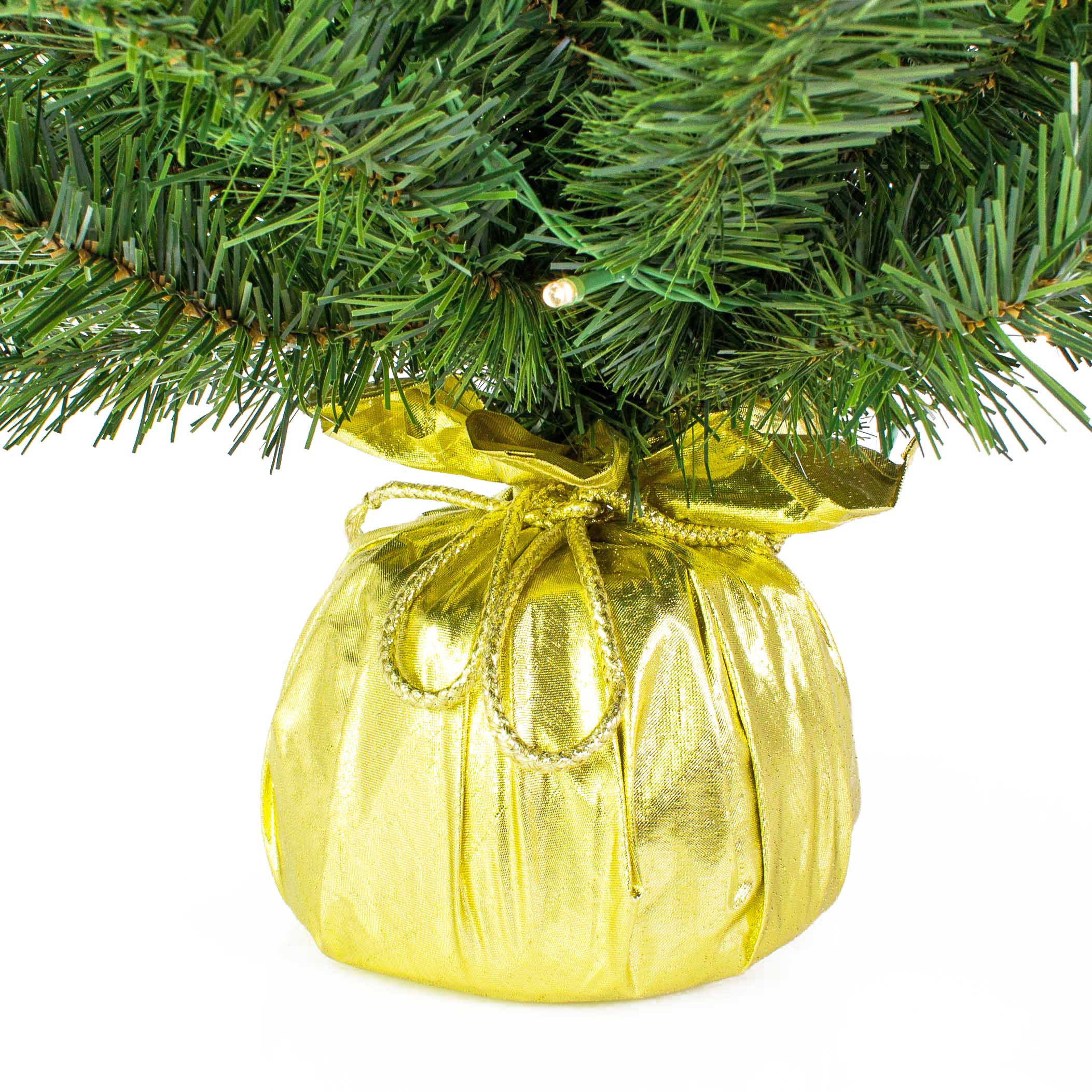 Mini sapin artificiel VARSOVIE, sac doré, LEDs, 90cm, Ø50cm