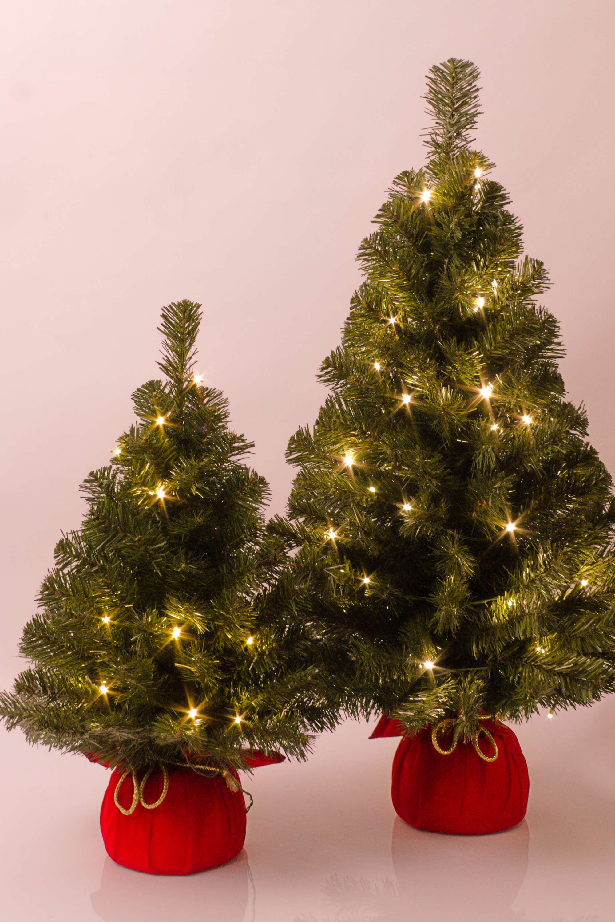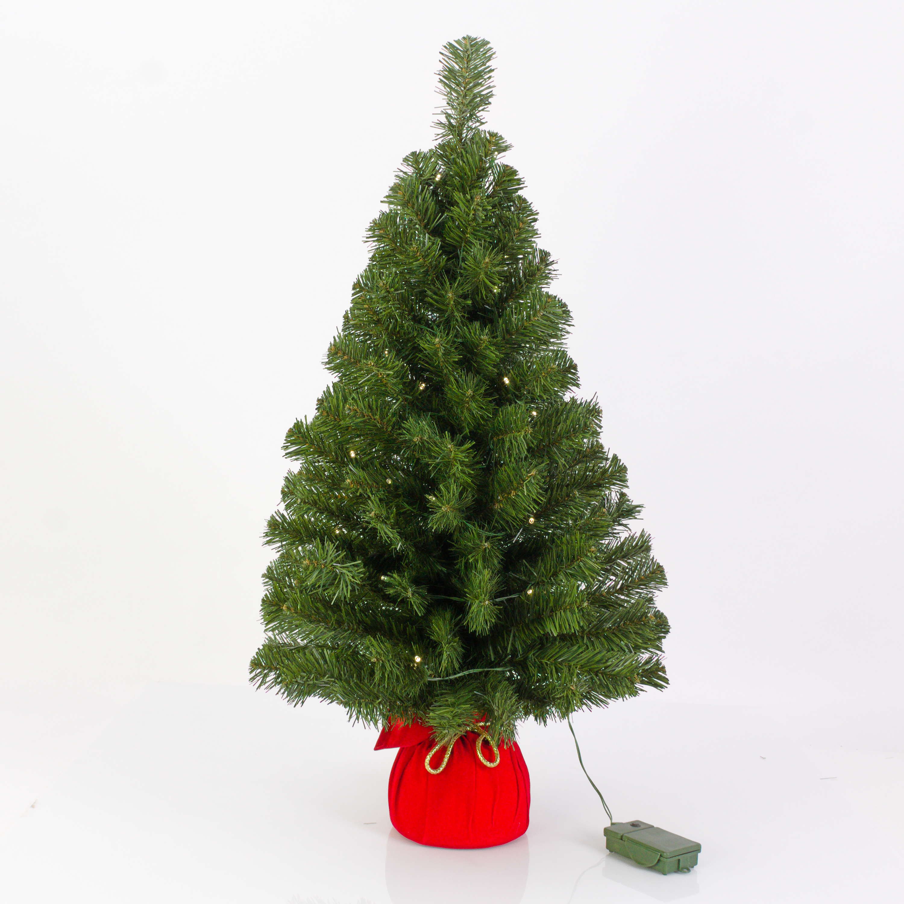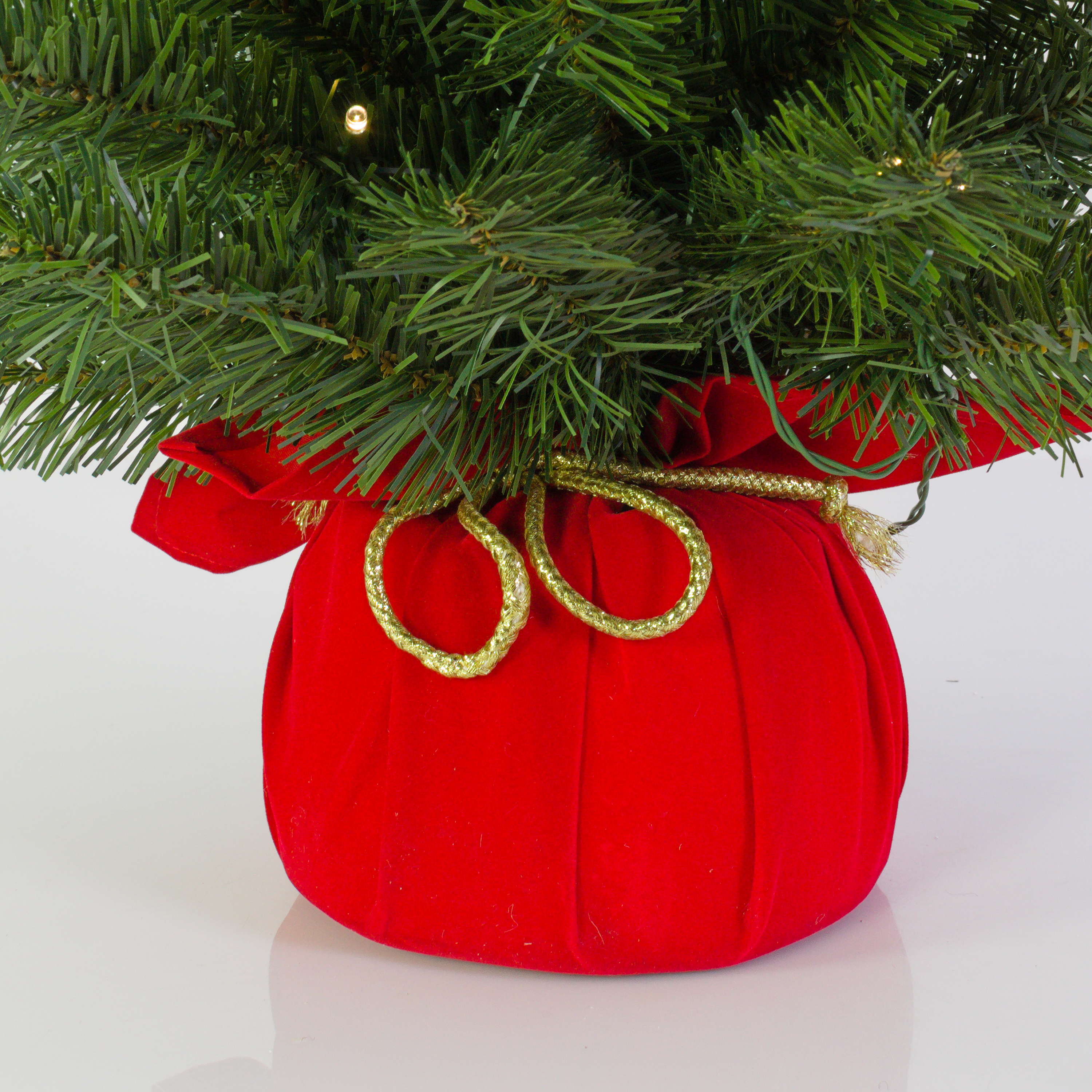 Mini sapin artificiel VARSOVIE, sac rouge, LEDs, 90cm, Ø50cm