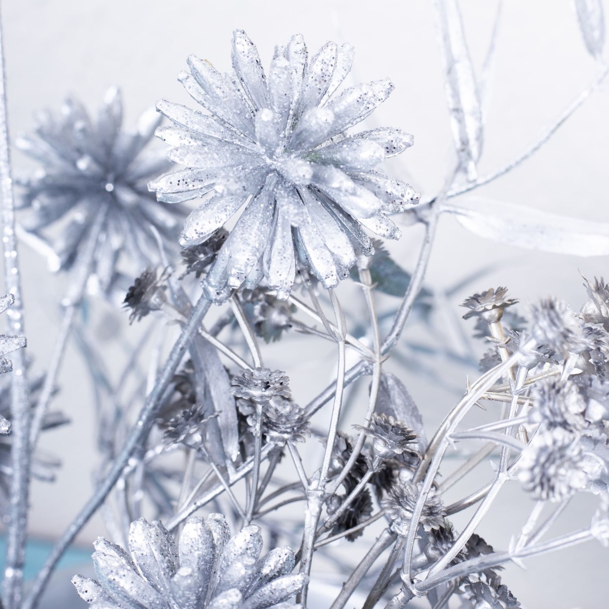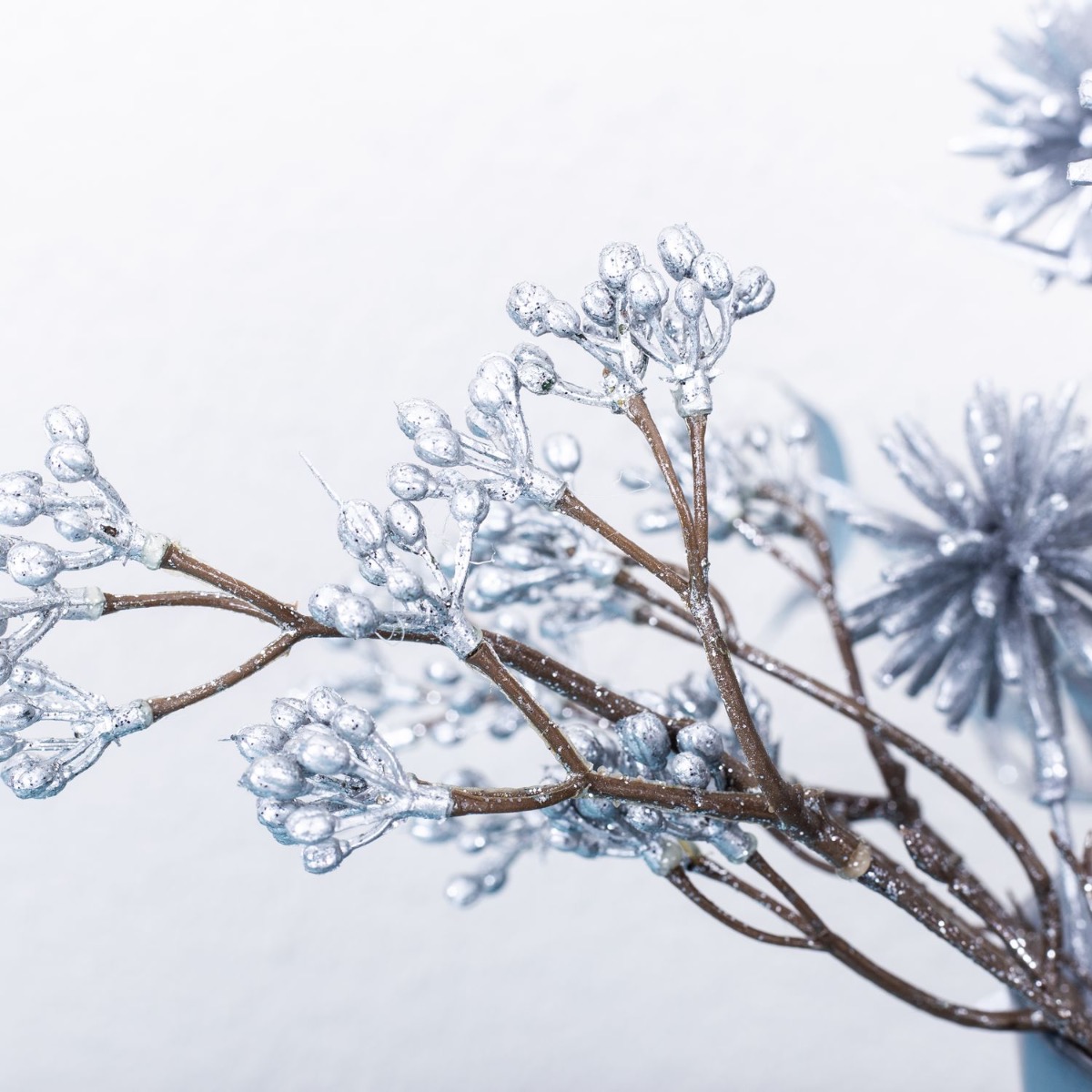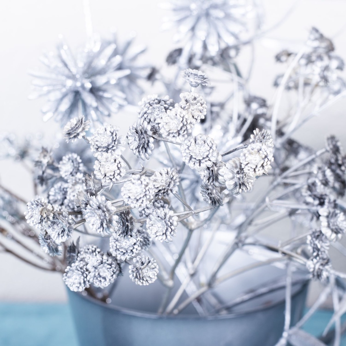L'argent et des paillettes ! On aimerait terminer le dernier jour de l'année avec beaucoup de glamour pour commencer la nouvelle année avec une énergie renouvelée. Les verres à bougie et les pots en argent font ressortir le look de la Saint-Sylvestre. Le bleuet argenté, le saule, le gaultheria et le gypsophile créent un superbe effet de brillance qui fait resplendir la table dressée pour le Nouvel An. Le set de bougies de Nouvel An crée une ambiance appropriée pour la soirée à venir et apporte en même temps quelques bons vœux sur la table. Le trèfle à quatre feuilles ne doit pas manquer. Shop the look!
