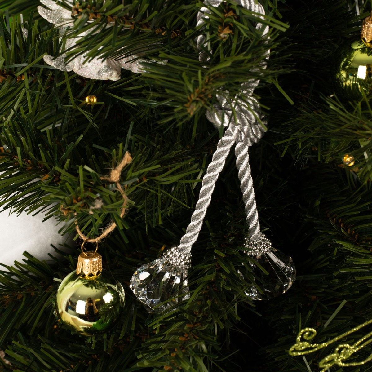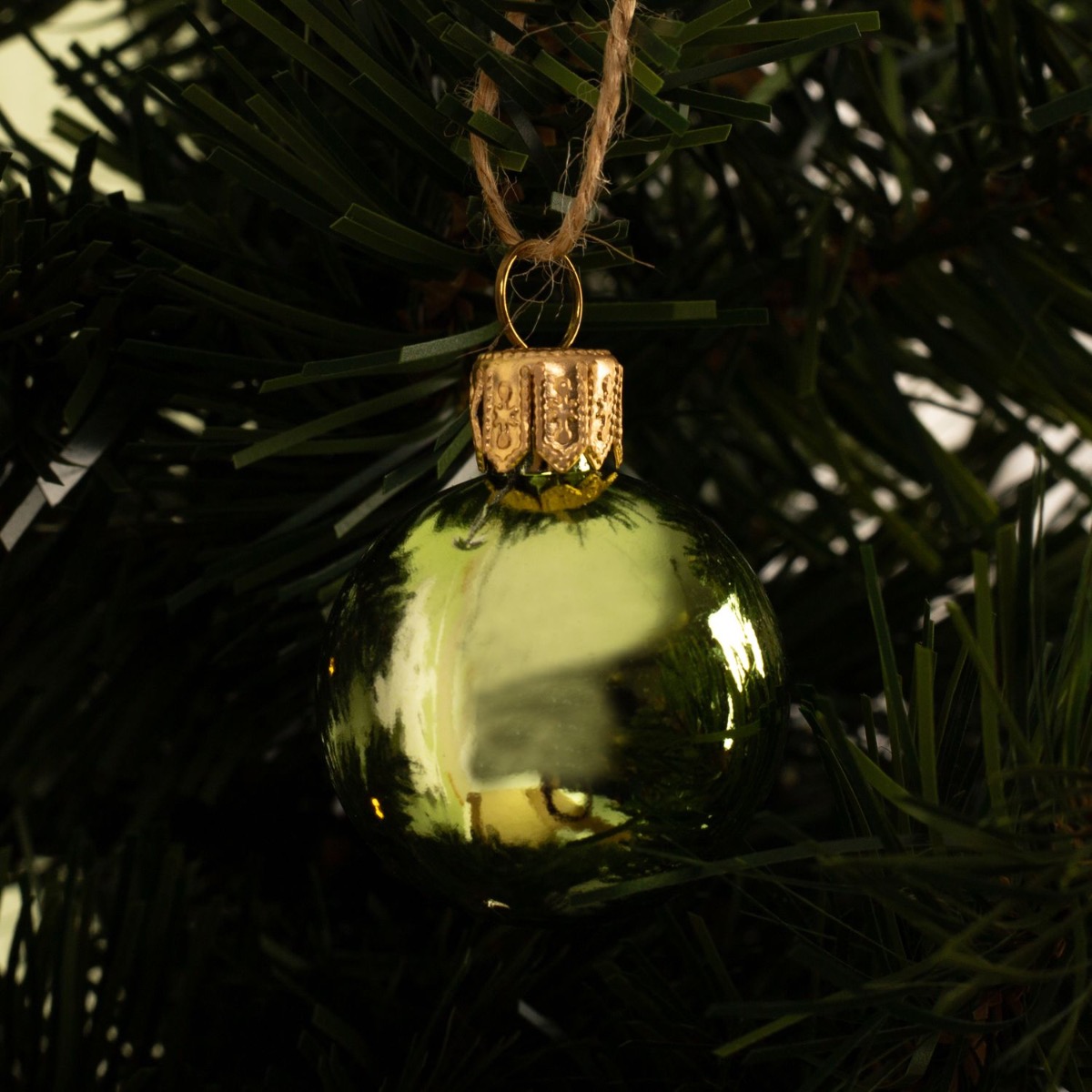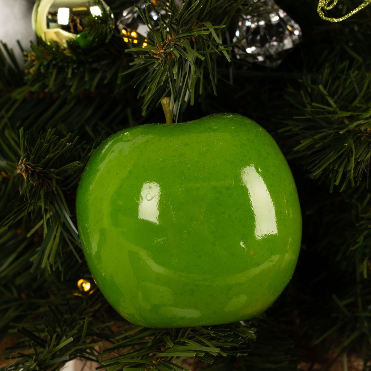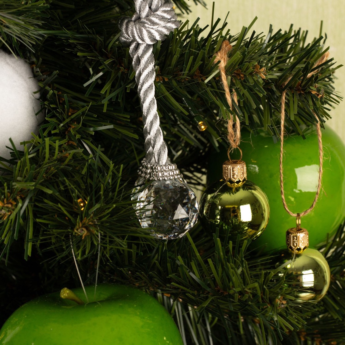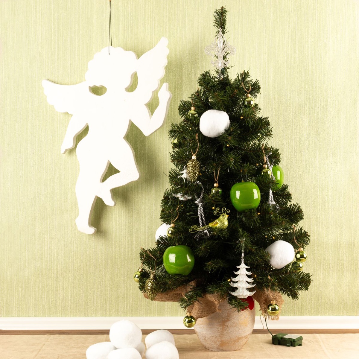 Conseil d'aménagement : Répartir uniformément les boules de neige et les pommes sur le petit sapin. Répartir ensuite le reste des décorations de l'arbre de Noël. Une guirlande lumineuse n'est pas nécessaire, car le petit sapin a déjà un éclairage.
