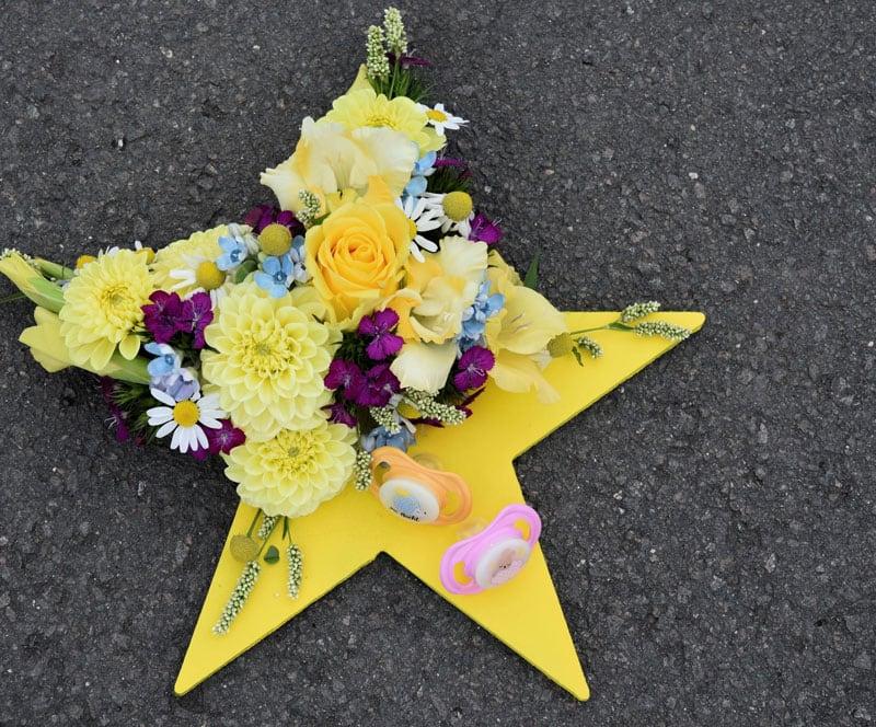 - De couleur noire, en forme d'étoile, base en mousse florale sur support en bois naturel Bioline