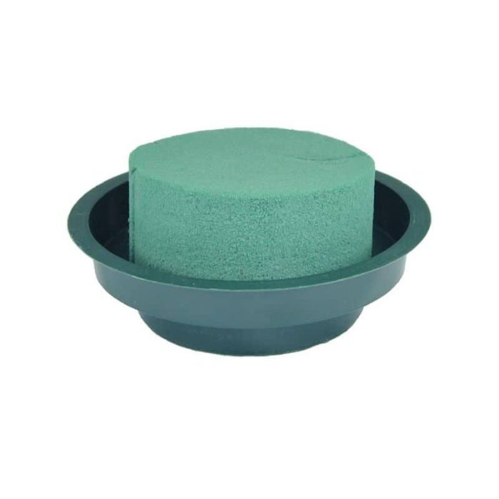 OASIS® Ideal Mousse florale humide en forme de cylindre dans une coupe en plastique, vert, 5cm, Ø12cm
