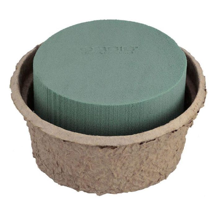 OASIS® Mousse florale humide Coupe ronde pour des compositions florales, coupe en papier recyclé Biolit, vert, 10cm, Ø18cm