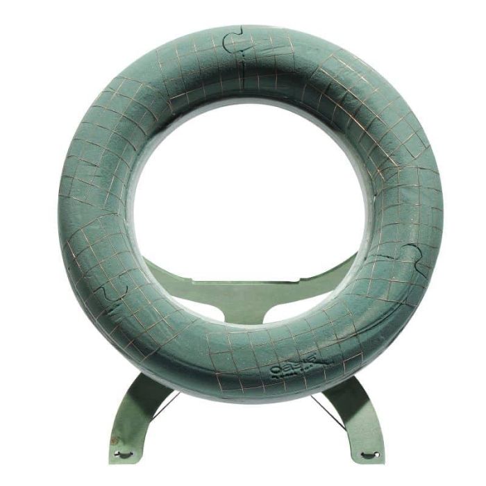 OASIS® Mousse florale humide en forme d'anneau , fond en mousse rigide ECObase, support en bois, grille métallique, vert, Ø52cm