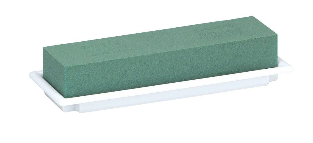 OASIS® Mousse florale humide rectangulaire pour des compositions florales, dans une coupe en papier composite, blanc-vert, 25x9x5cm