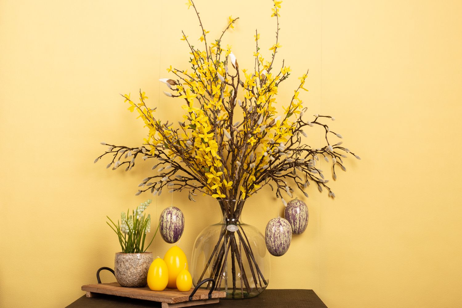 Conseil d'aménagement: Choisir la couleur des œufs de Pâques de manière à ce que ce look ne soit pas trop coloré. Répartir uniformément les branches dans le vase.