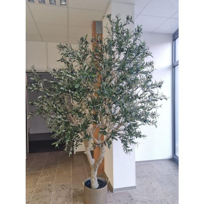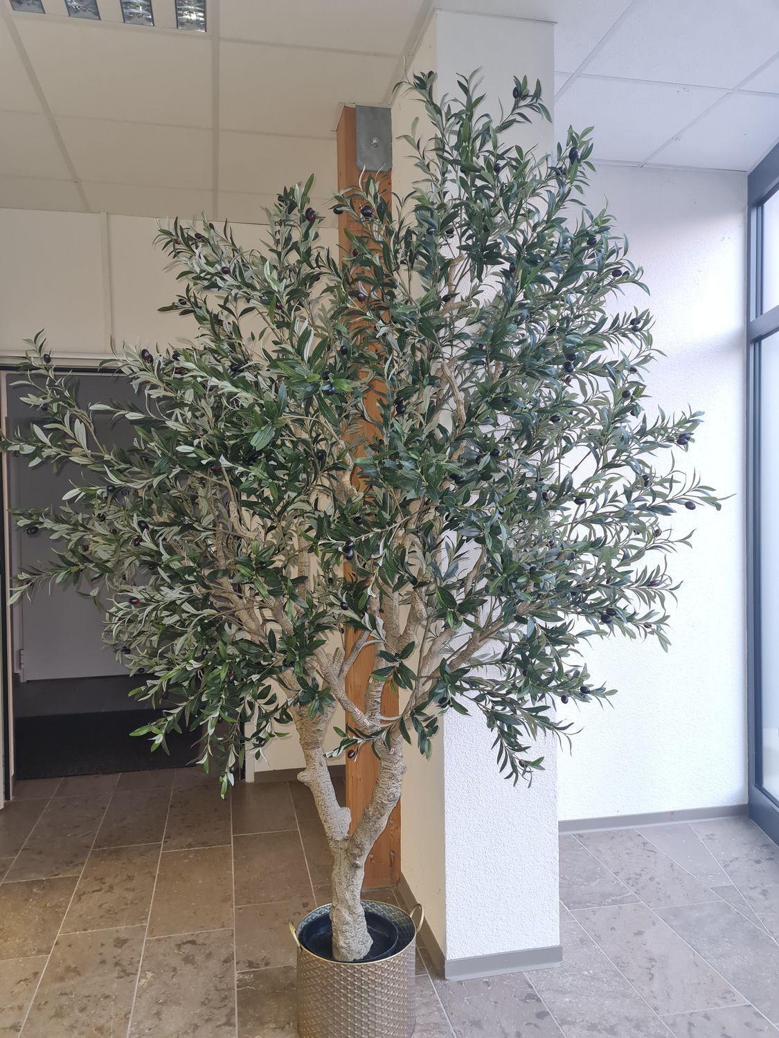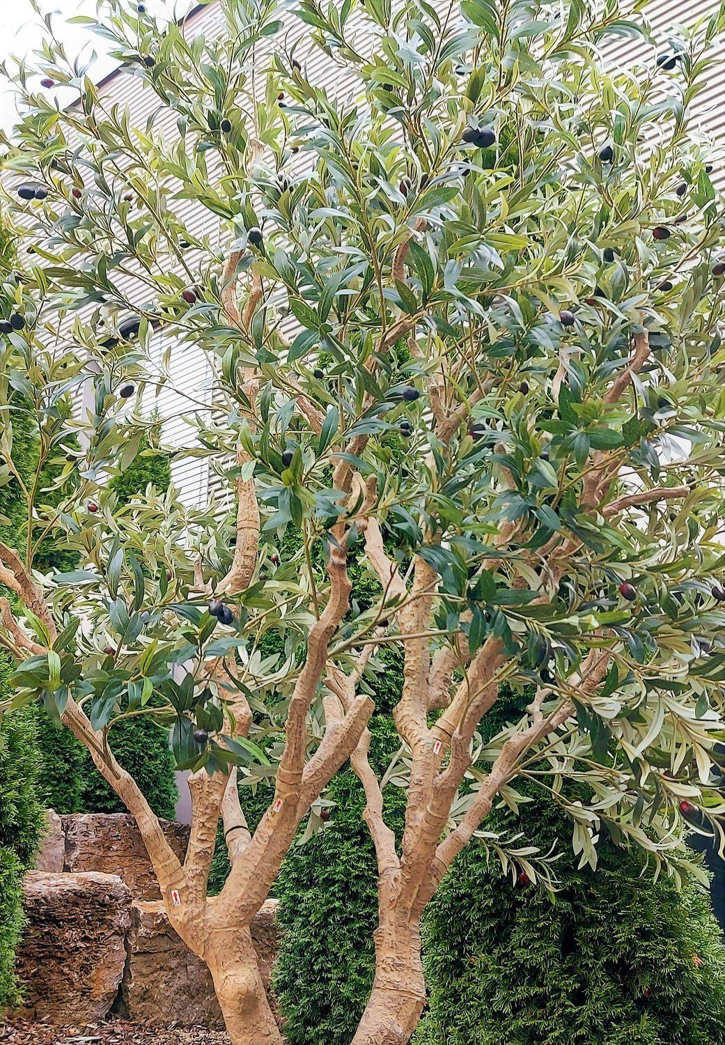 Olivier décoratif MALACHI avec des fruits, tronc artificiel, pot décoratif, 250cm