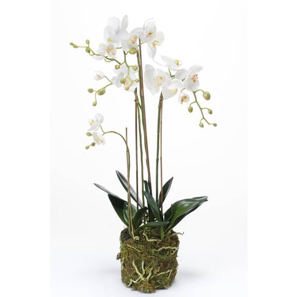 Orchidée artificielle PABLA, motte de mousse, blanc, 80cm, Ø8-11cm