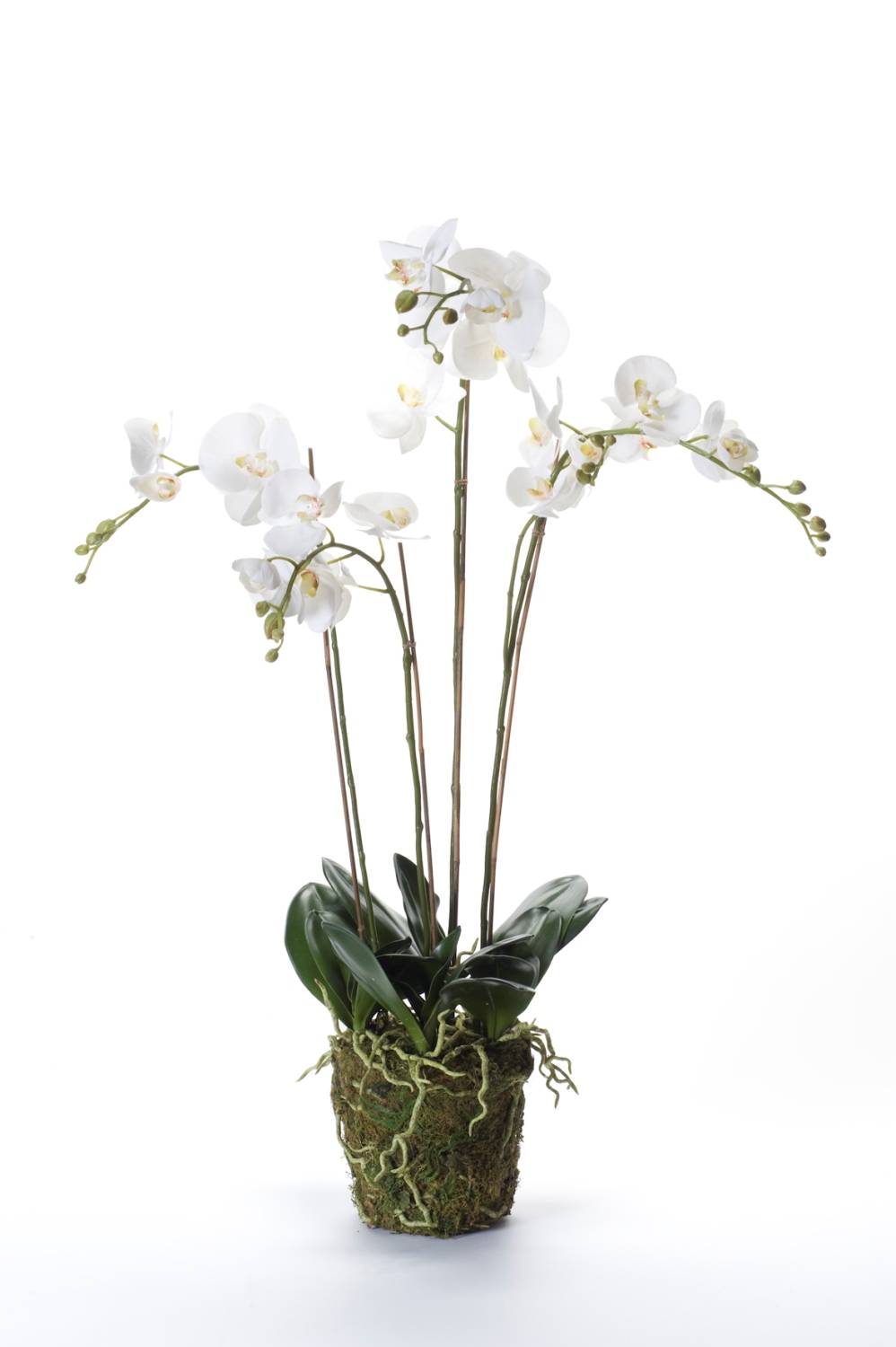 Orchidée artificielle PABLA, motte de mousse, blanc, 90cm, Ø10-13cm