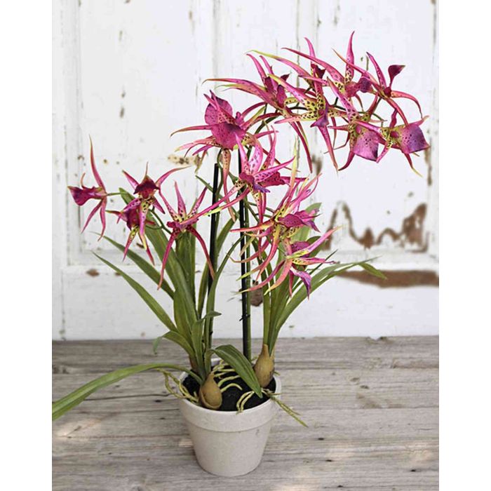Orchidée Brassia artificielle ZAPHIRA en pot décoratif, rose fuchsia-vert, 55cm