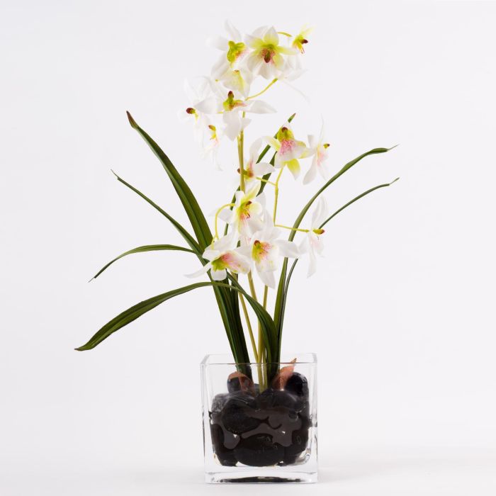 Orchidée Dendrobium artificielle ZUZA en verre décoratif, blanc-vert, 35cm