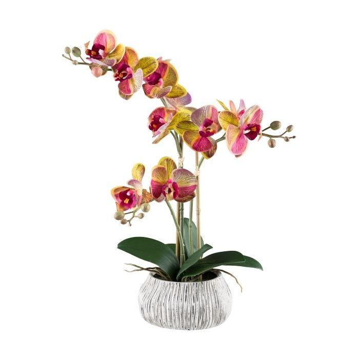 Orchidée Phalaenopsis artificielle BLORVEN, coupe en ciment, racines, jaune-rose fuchsia, 50cm