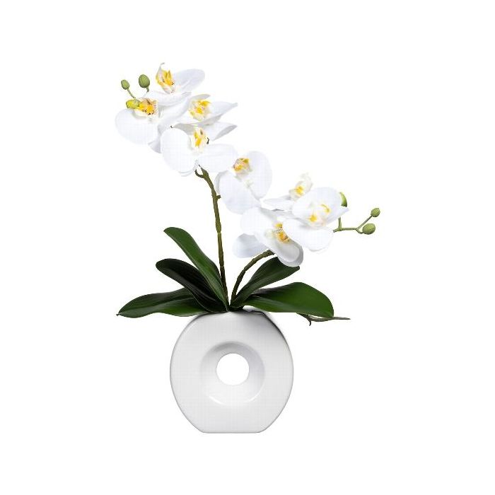 Orchidée Phalaenopsis artificielle DRELMOR, vase en céramique, racines, blanc, 35cm