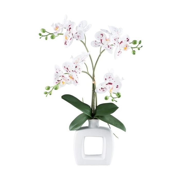 Orchidée Phalaenopsis artificielle DRUKLON, vase en céramique, racines, blanc-rouge, 40cm