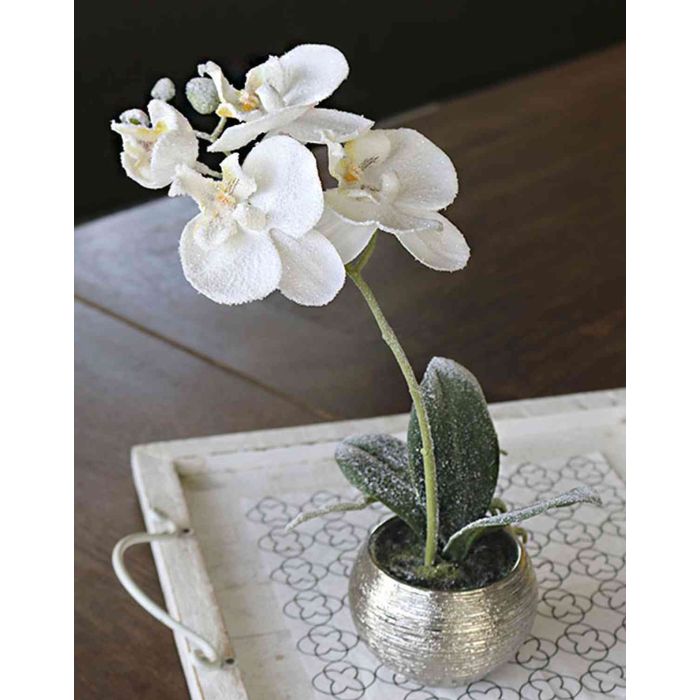 Orchidée Phalaenopsis artificielle KAREN, pot décoratif, givré, blanc, 35cm