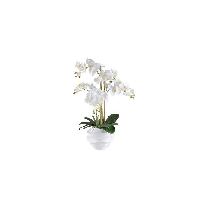 Orchidée Phalaenopsis artificielle STONFER, pot décoratif blanc, racines, blanc, 70cm