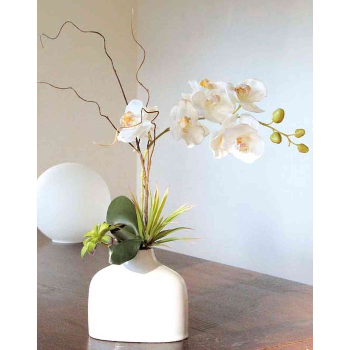 Orchidée Phalaenopsis artificielle TIALDA, succulentes, vase en céramique, blanc, 50cm