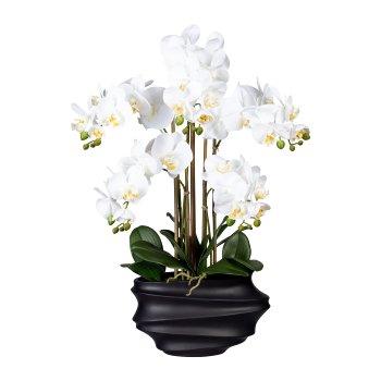 Orchidée Phalaenopsis artificielle ZALBROK, vase décoratif noir, racines, blanc, 75cm
