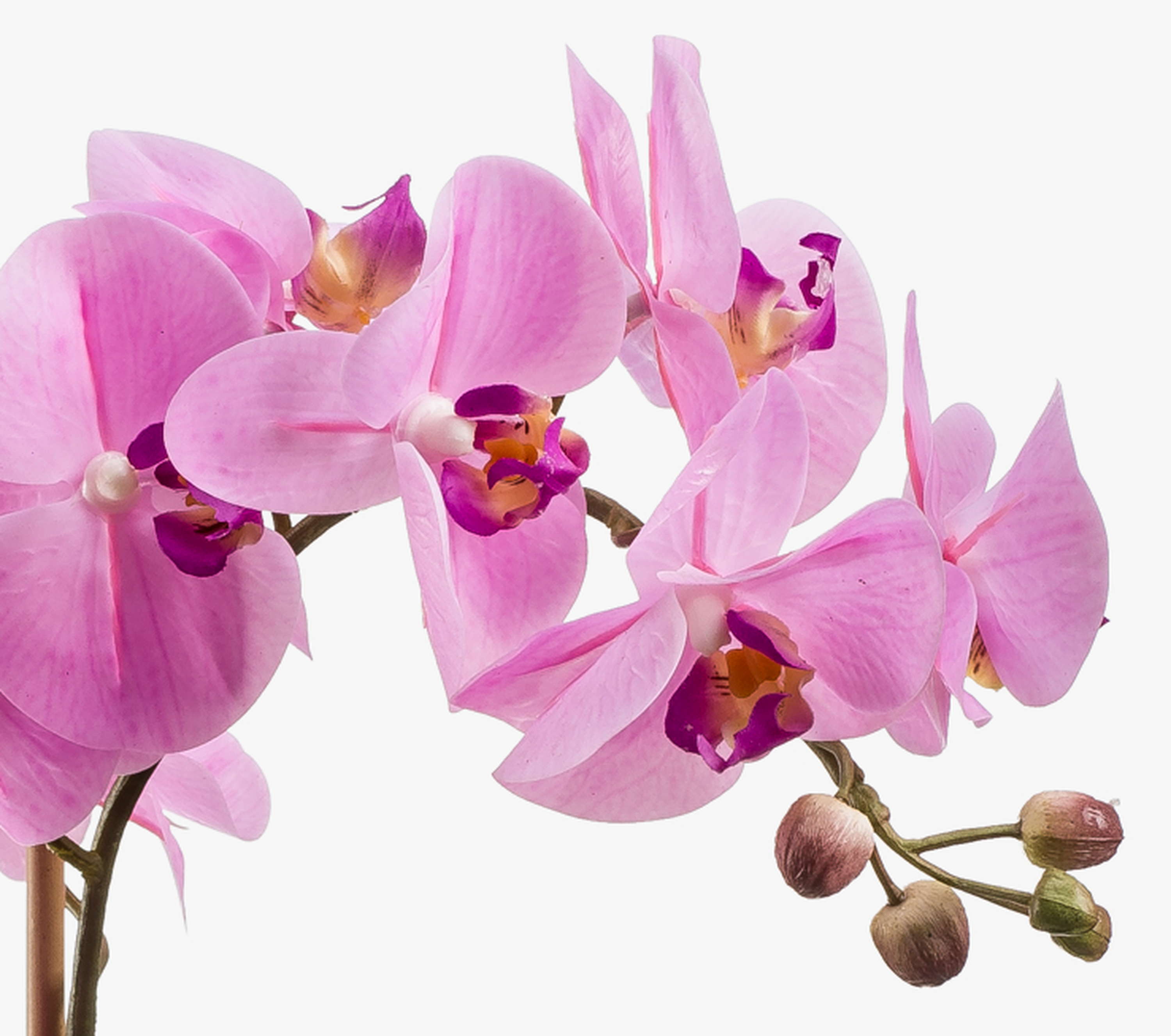 Cette orchidée artificielle (Phalaenopsis) CANDIDA pourvue de 2 tiges de fleurs roses est un joli complément à votre décor dans le salon, la chambre à coucher ou la salle à manger.