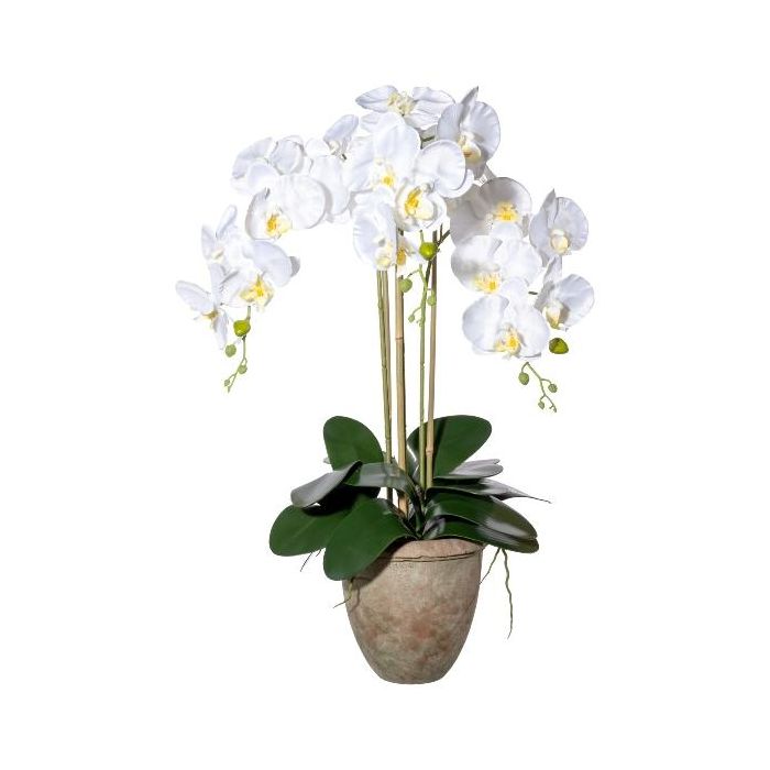Orchidée Phalaenopsis en tissu FRIMTOR en pot en terre cuite, racines, blanc, 75cm