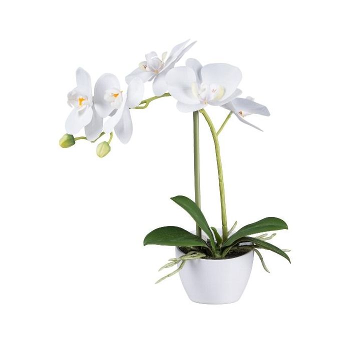 Orchidée Phalaenopsis en tissu FUNTIF en cache-pot en mélamine, racines, blanc, 35cm