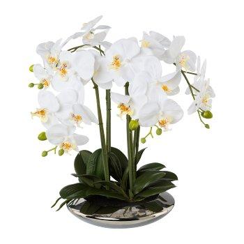 Orchidée Phalaenopsis en tissu MANULO, coupe en céramique argentée, racines, blanc, 40cm