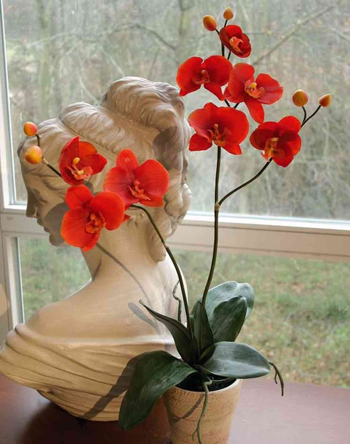 Orchidée Phalaenopsis synthétique RHIJANA, pot en argile, rouge, 60cm