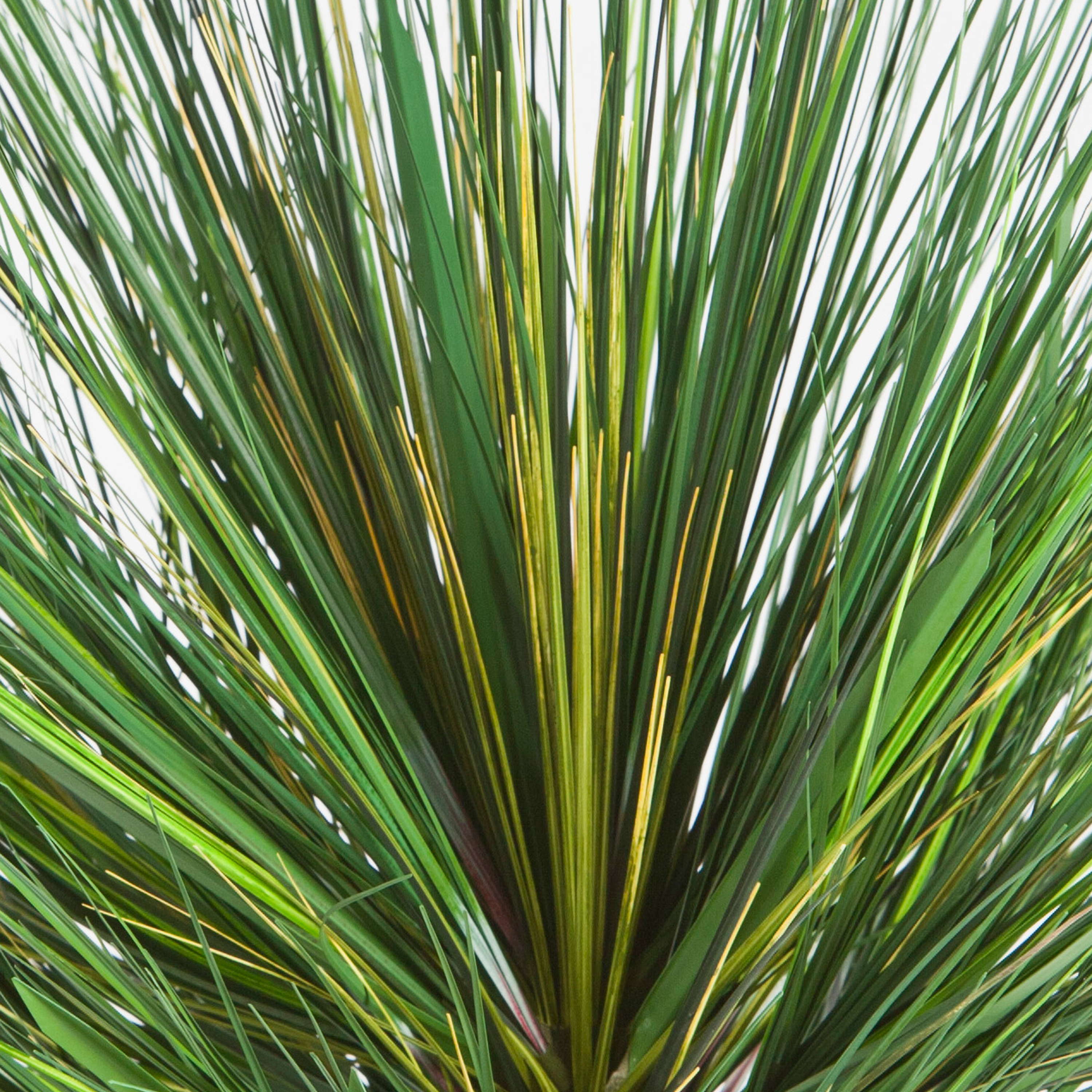 Jolie graminée ornementale en pot. La touffe d’herbe artificielle de couleur verte mesure au total environ 70 cm.